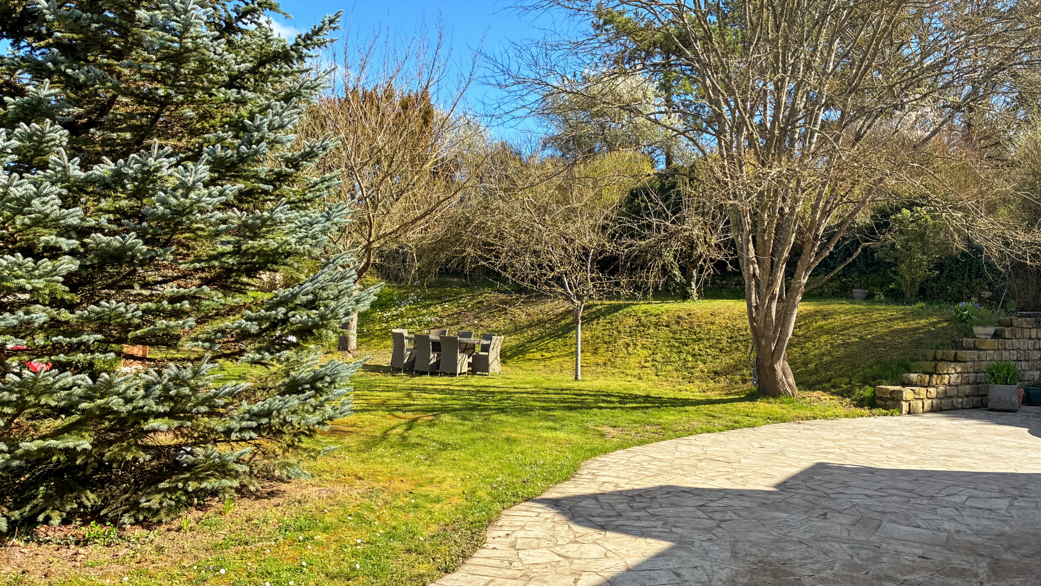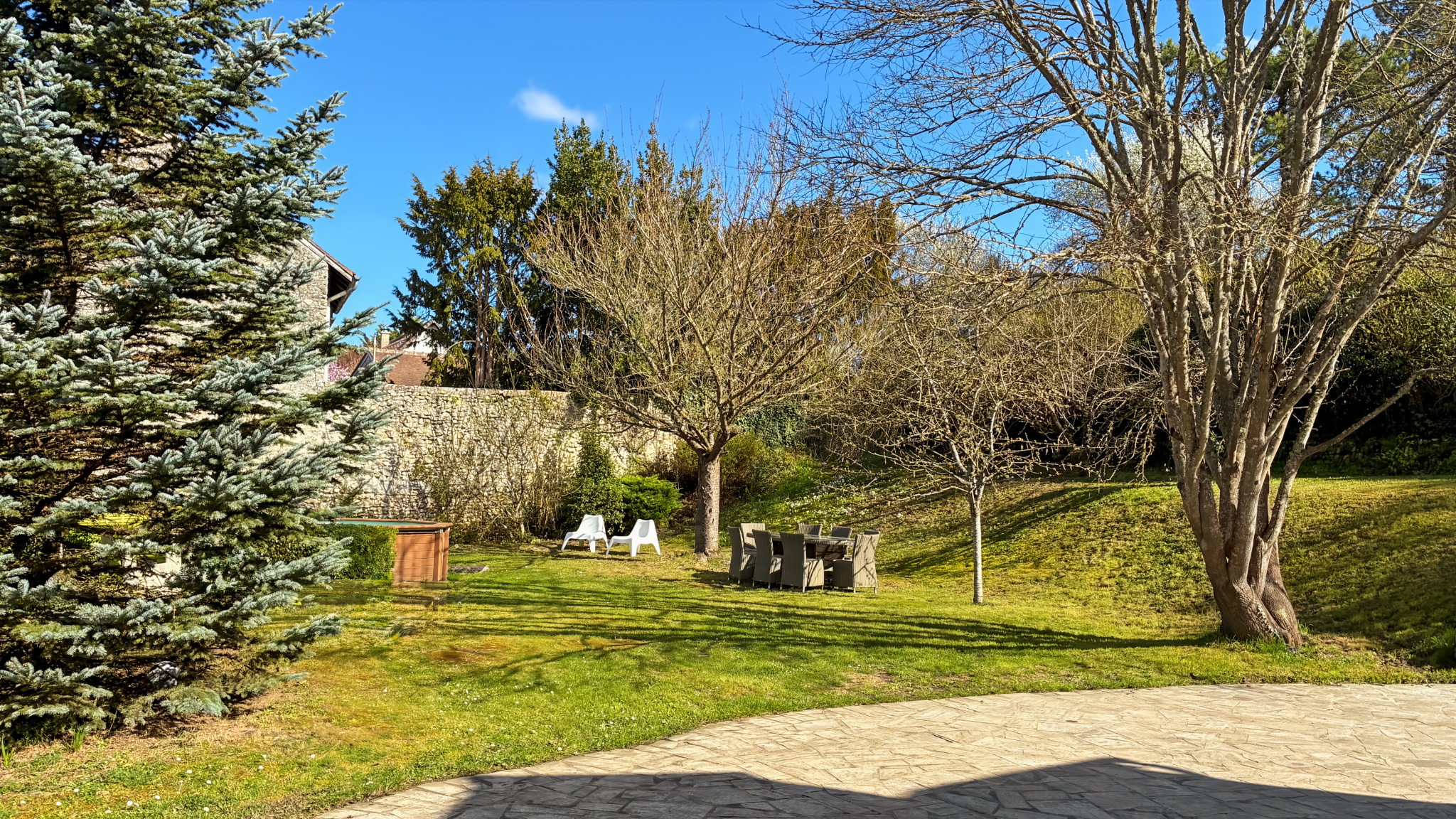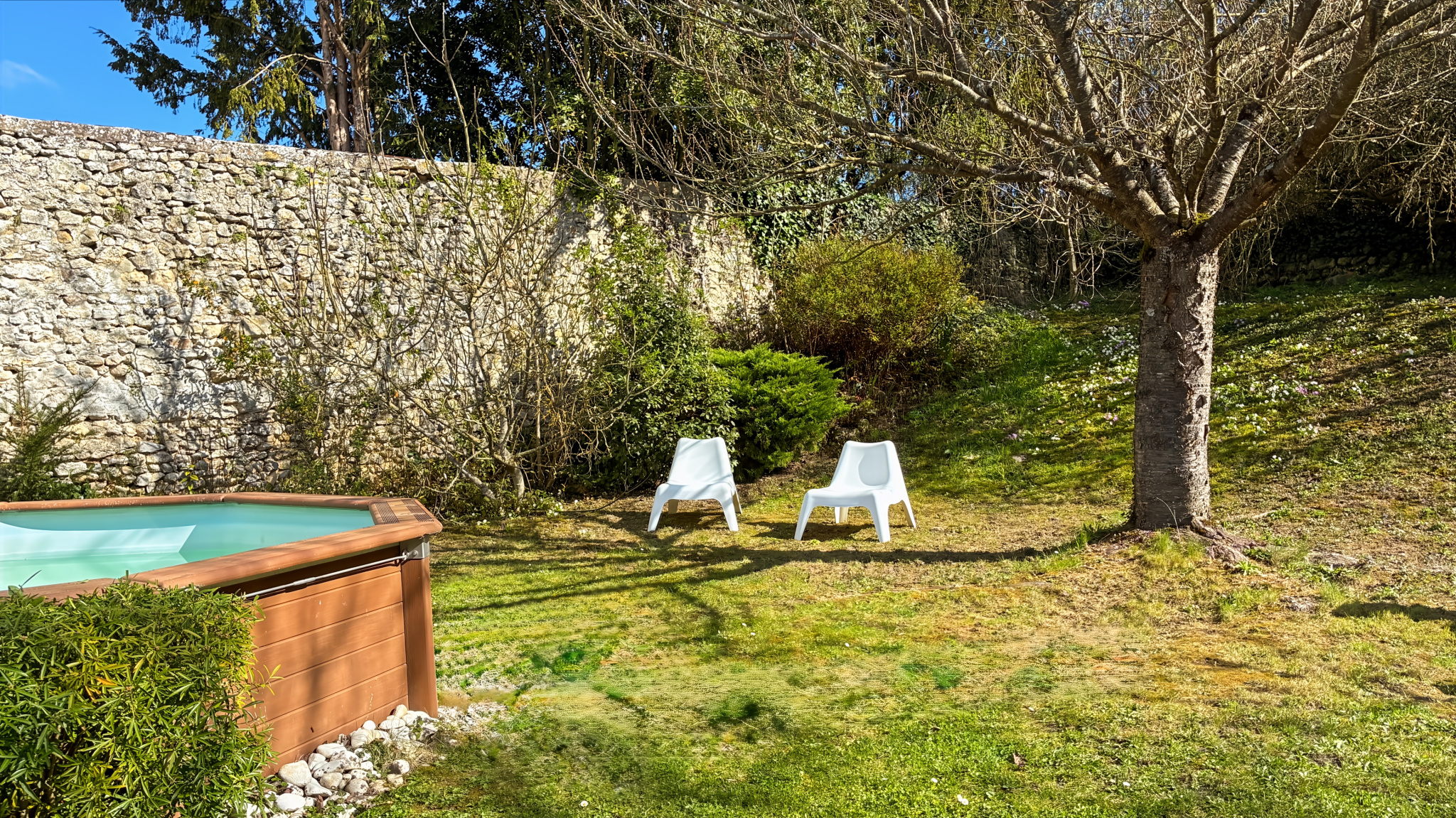 Le terrain : plat, arboré et entièrement clos, offre un espace extérieur spacieux, sécurisé, particulièrement adapté à une vie de famille. Une piscine hors sol chauffée trouve naturellement sa place dans le jardin, tandis qu’un garage, un espace de bricolage et une cave voûtée viennent enrichir les annexes.