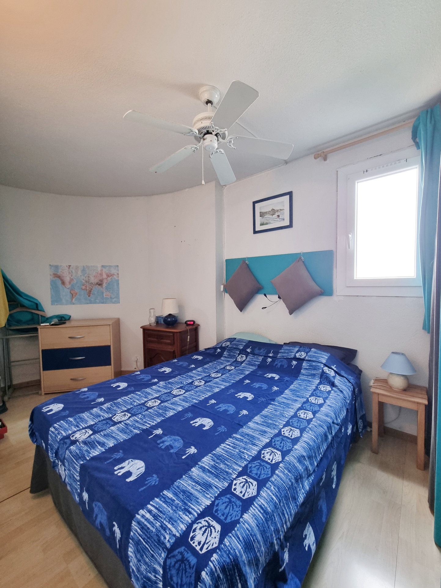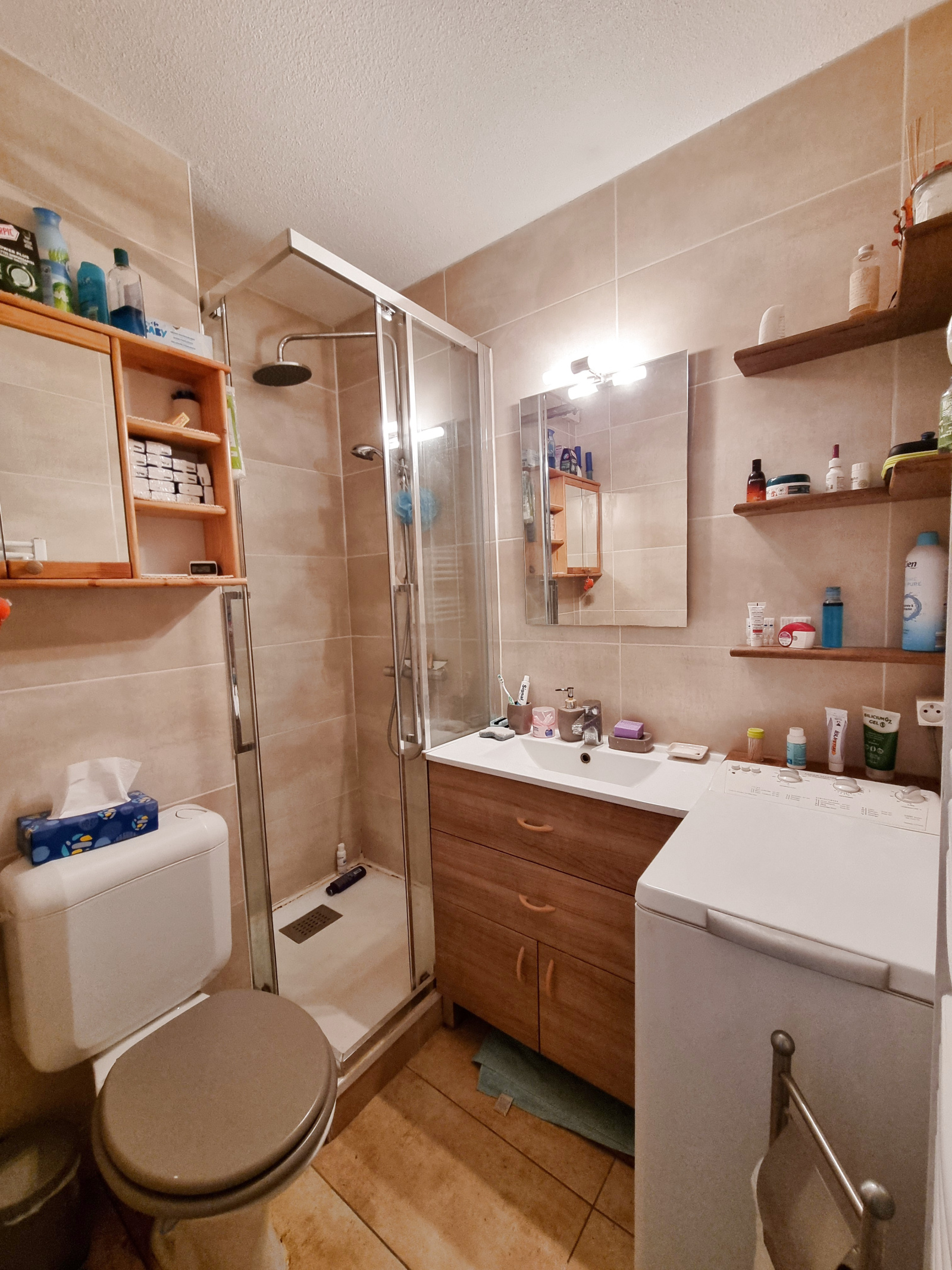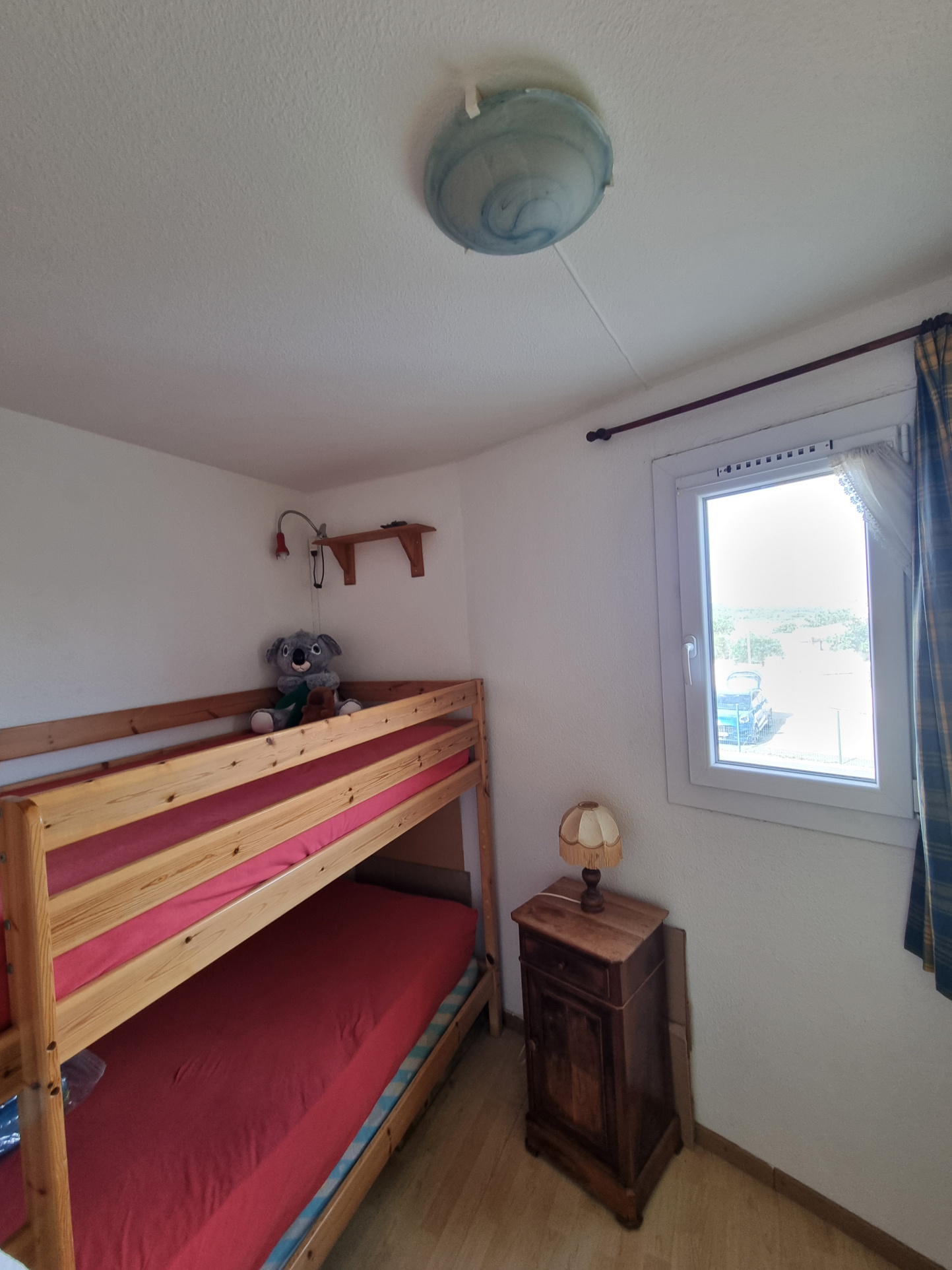 L’appartement se compose d’une belle chambre principale avec placard et accès à un balcon, d’une seconde chambre équipée de lits superposés et de rangements, ainsi que d’un séjour lumineux prolongé par une loggia à trois vantaux offrant une agréable vue dégagée. Vous apprécierez également l’espace cuisine fonctionnel avec placards, le couloir d’entrée optimisé et la salle d’eau moderne.
