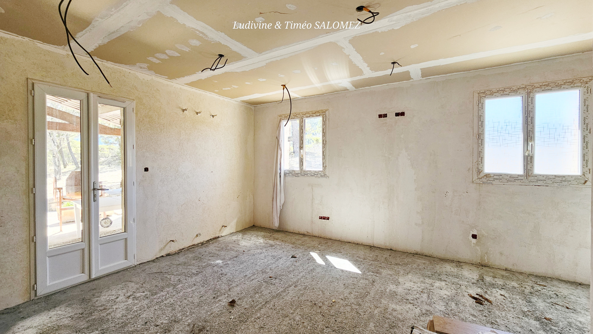 Maison commencée en 2010, à terminer. Les aménagements sont terminés, il reste façades extérieurs, et murs et sols intérieurs à terminer.