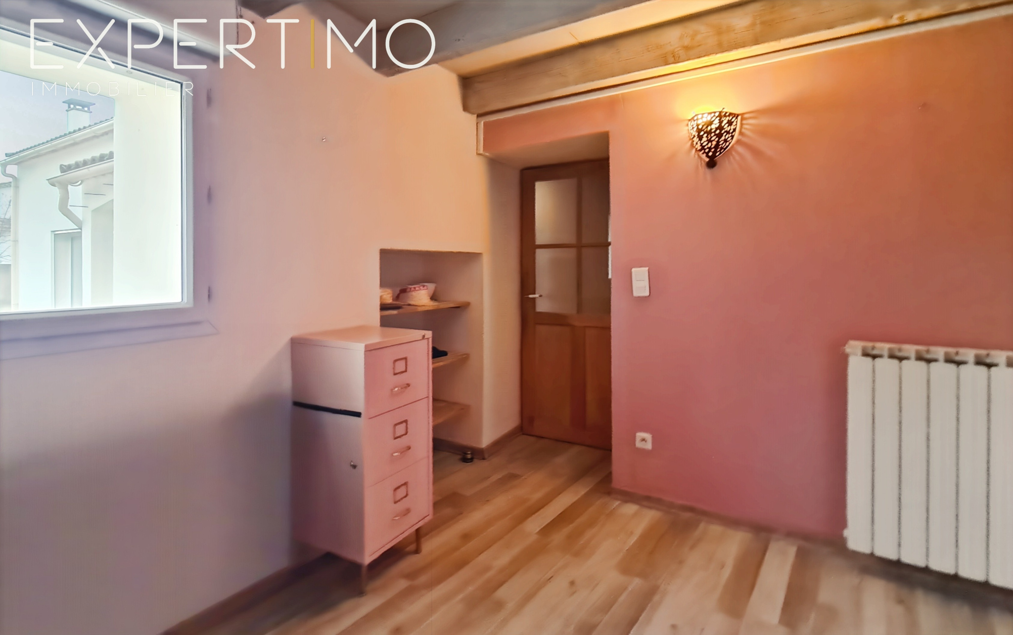 A l'étage se trouve un second espace bureau surplombant le séjour cathédrale donnant sur une grande chambre parentale avec salle de bains et wc.