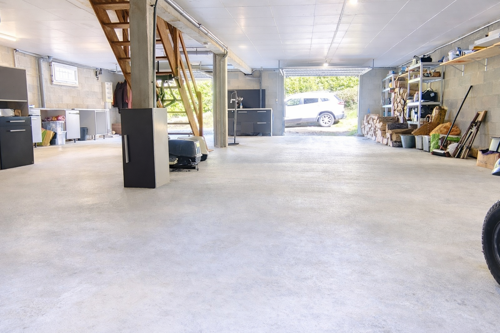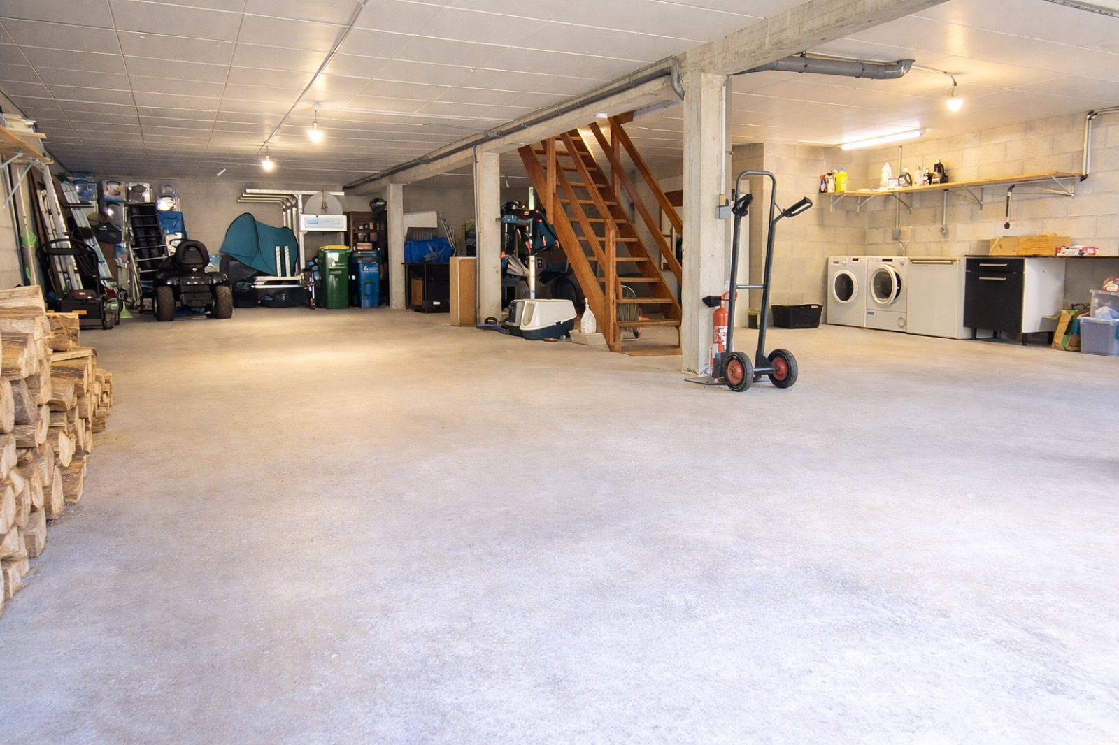 Le véritable atout de cette maison : un vaste sous-sol isolé de 136 m² avec deux portes de garage et un accès direct à la maison. Idéal pour artisans, local professionnel, motos, vélos, remorque, voitures...