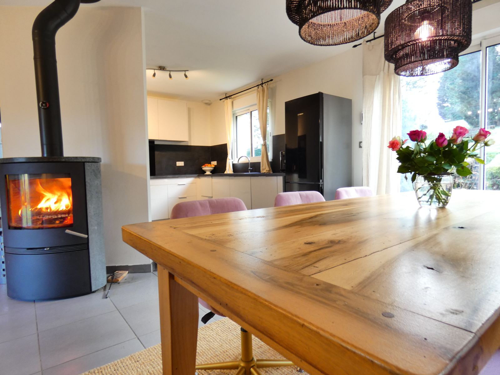 Le chauffage est assurée par un poele à bois ollaire neuf d'une puissance nominale de 7.5kw.