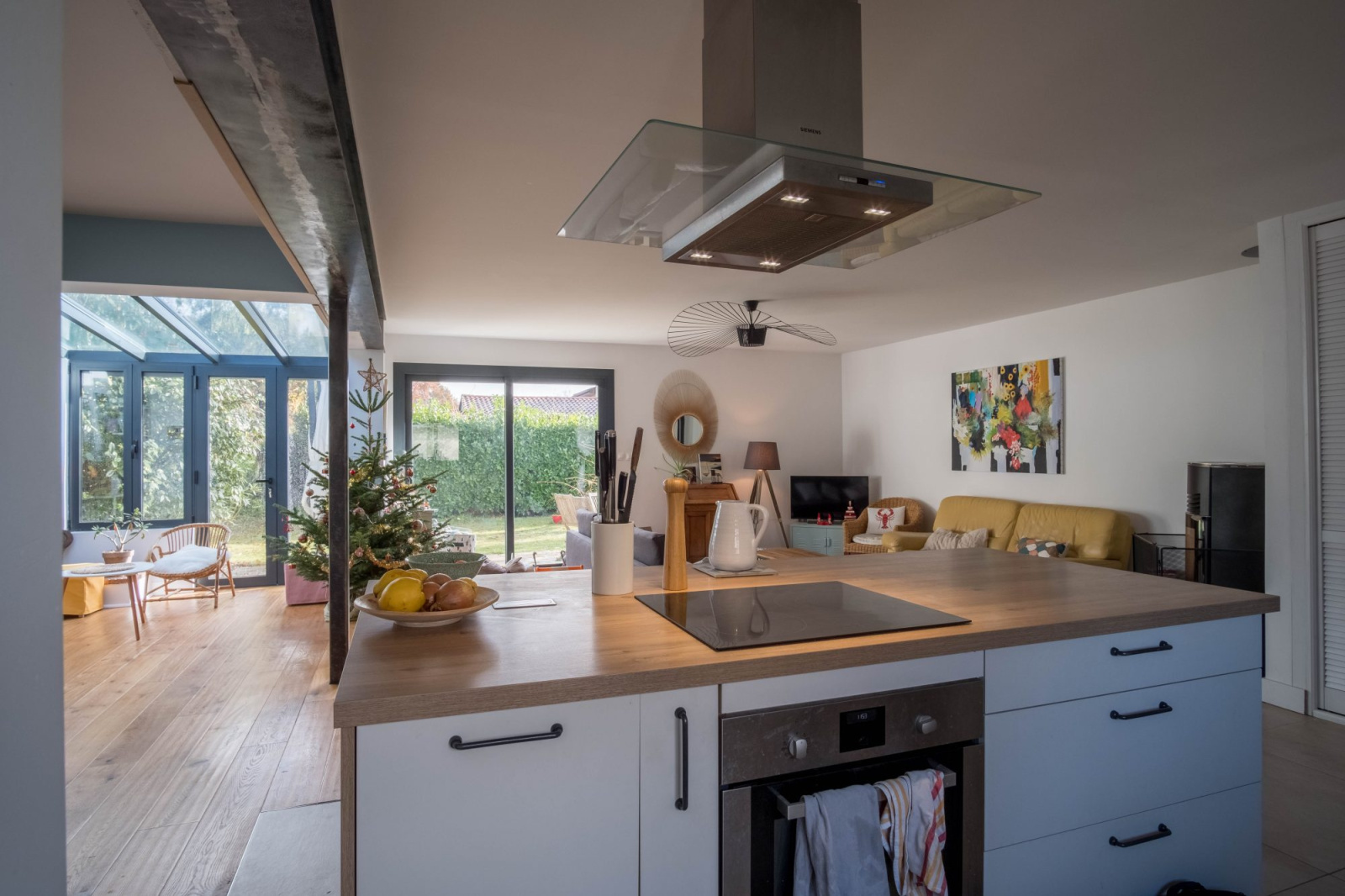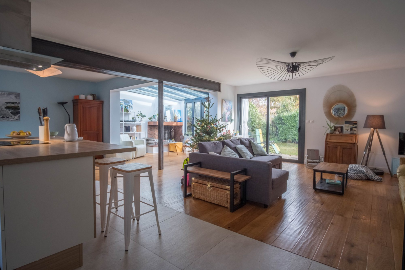 Pessac Cap de Bos. Dans un quartier recherché proche des commerces, des écoles et de toutes les commodités, très belle villa rénovée de plain-pied avec trois chambres sur une parcelle de terrain de plus de 800 m². Elle se compose d'une pièce de vie ouverte d'environ 65 m², comprenant un salon-séjour, une cuisine neuve entièrement équipée et un deuxième salon sous verrière, de trois chambres (dont une de plus de 13 m²) avec accès direct au jardin, un cellier, une salle de bain ainsi qu'un wc séparé. . A l' extérieur, terrasse, très beau terrain arboré piscinable, garage. Terrain entièrement clôturé, poêle à pellets performant, chauffage par pompe à chaleur, ... Villa rénovée dans un style loft avec beaucoup de charme dans un quartier recherché. D'autres photos, un plan, ainsi qu'un descriptif détaillé et complet du bien sont à votre entière disposition sur simple demande. Groupe DIÉ IMMOBILIER - Matthieu VANMACKELBERG - Agent Commercial - 06 61 95 67 59 - matthieu.v@die-immobilier.net