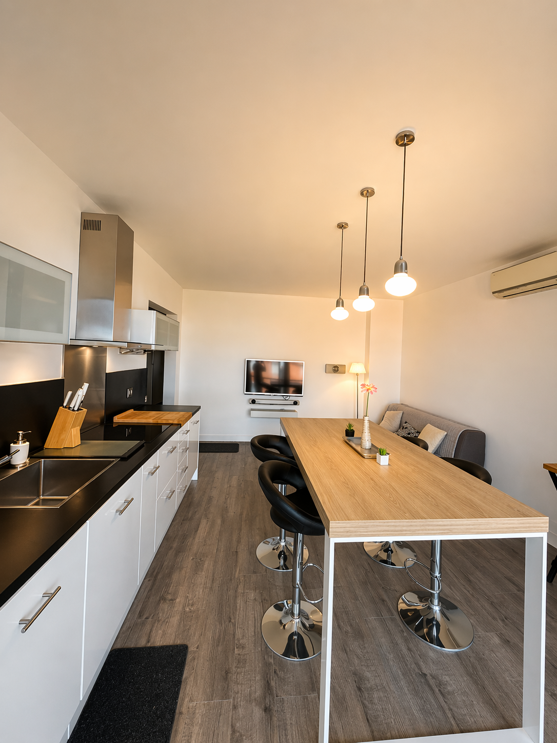-d'un séjour avec cuisine ouverte équipée,