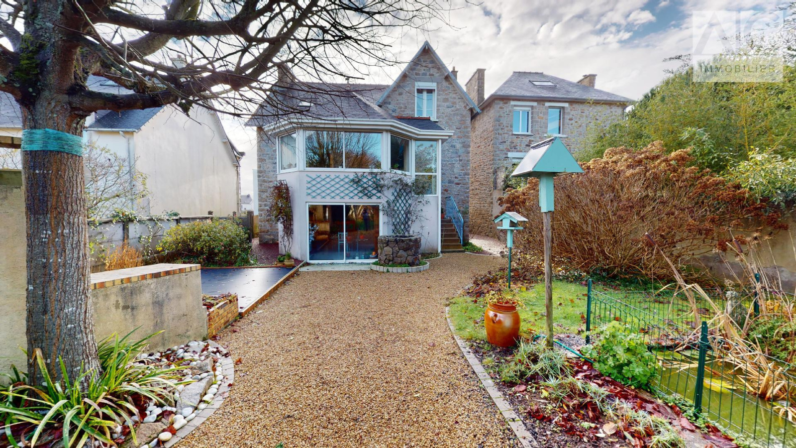 EXTÉRIEUR : Terrain arboré et clôturé de 1011m2 / Bassin / Puits individuel / Abris de jardin raccordé en électricité.