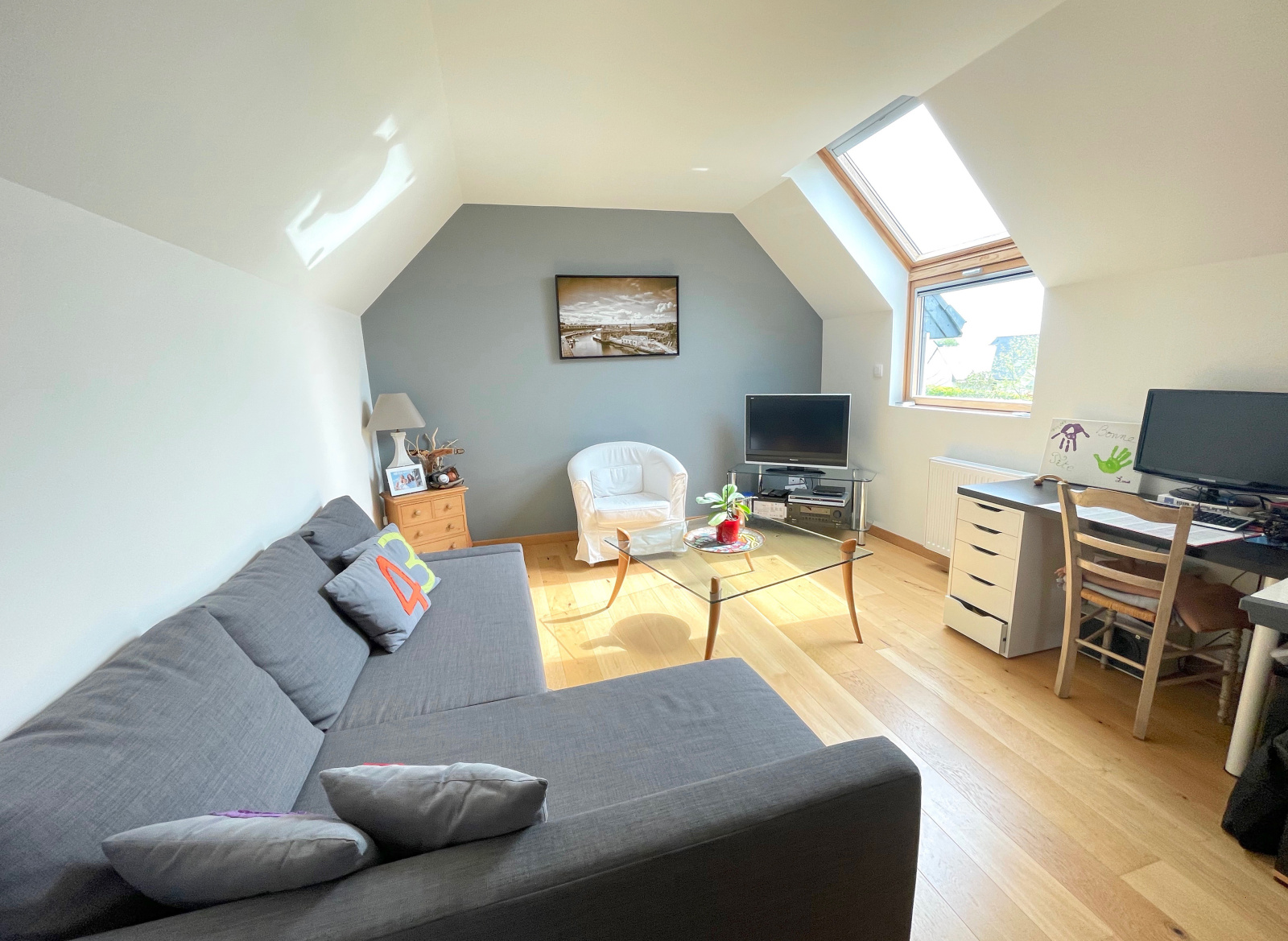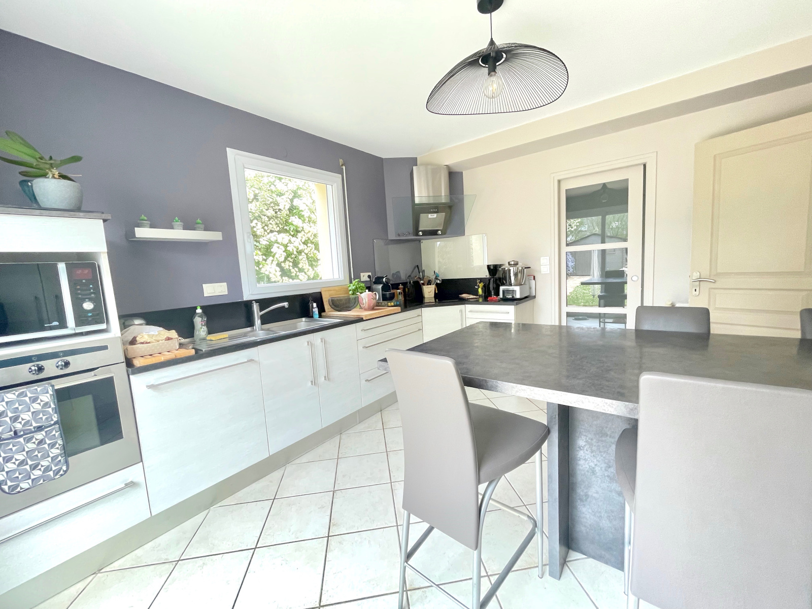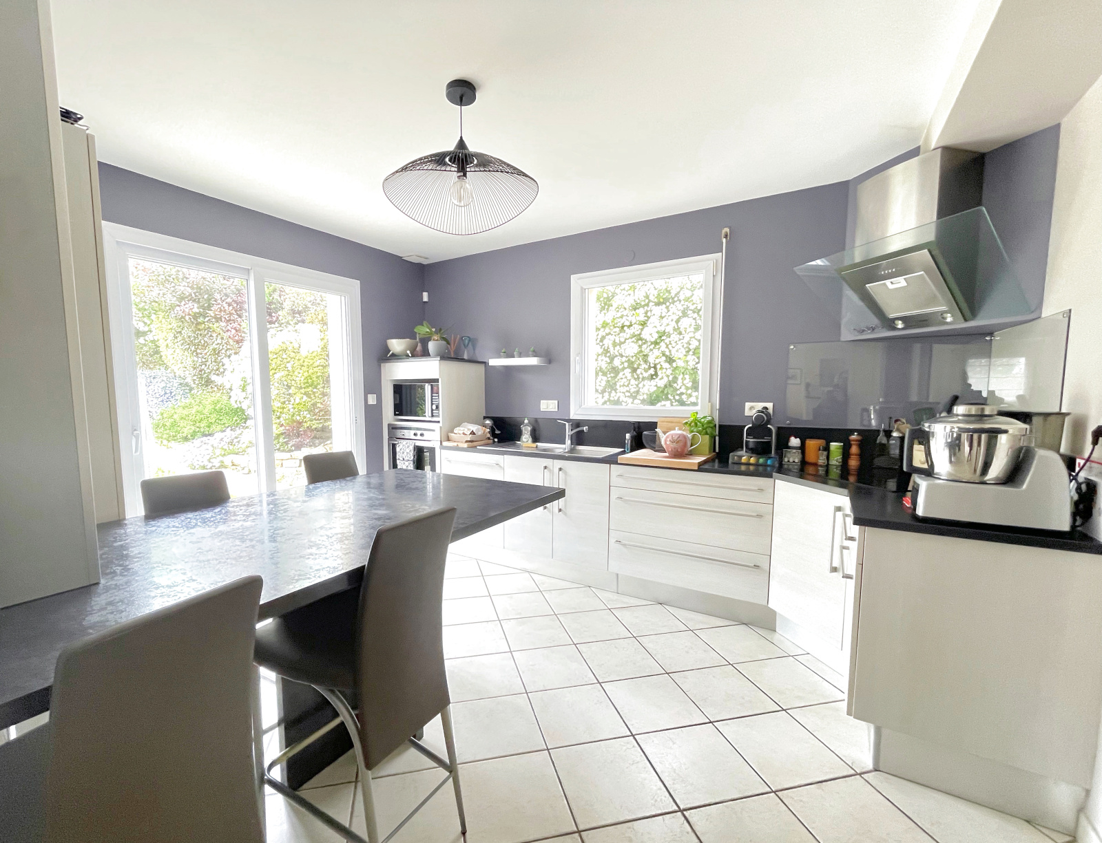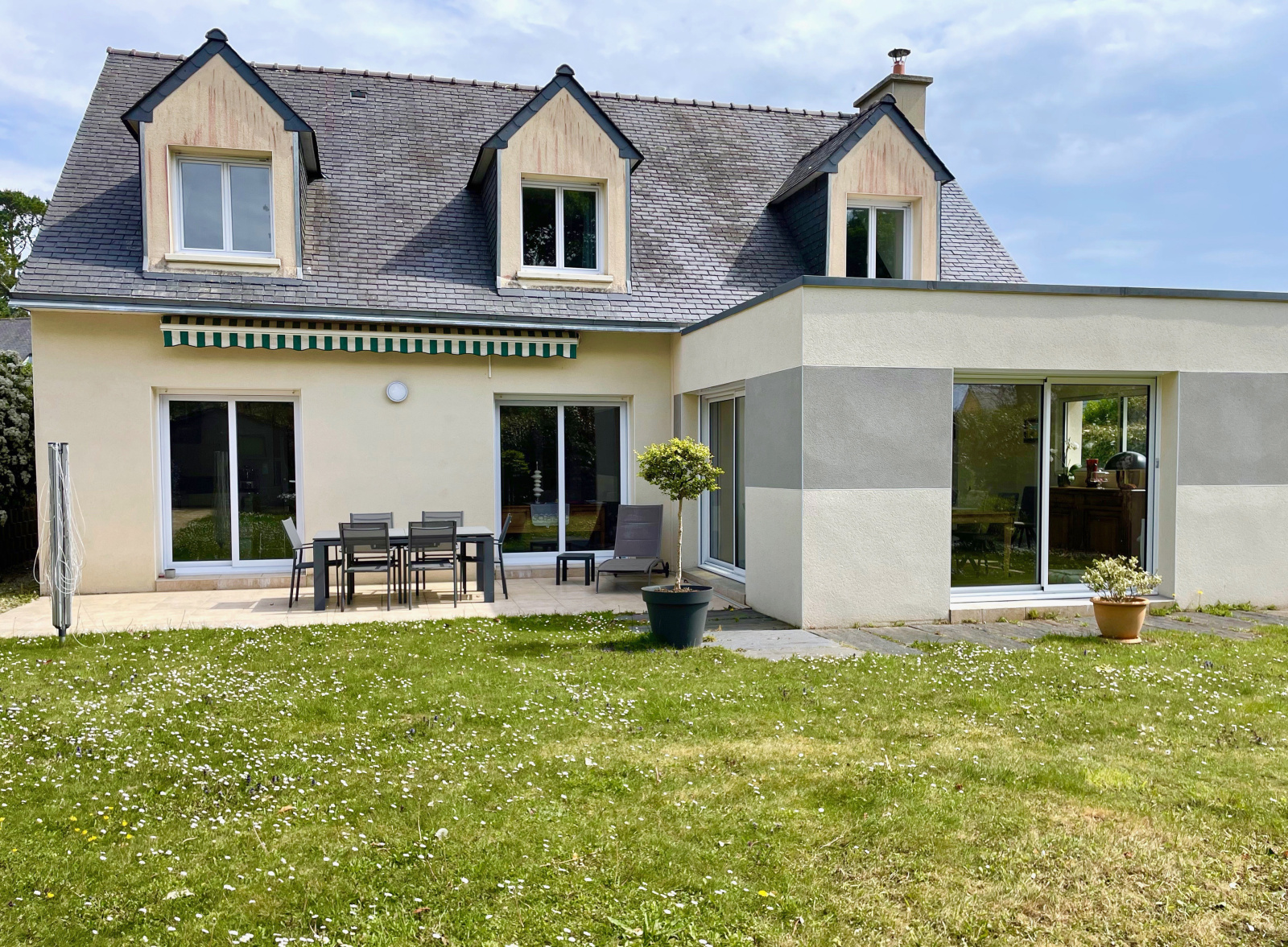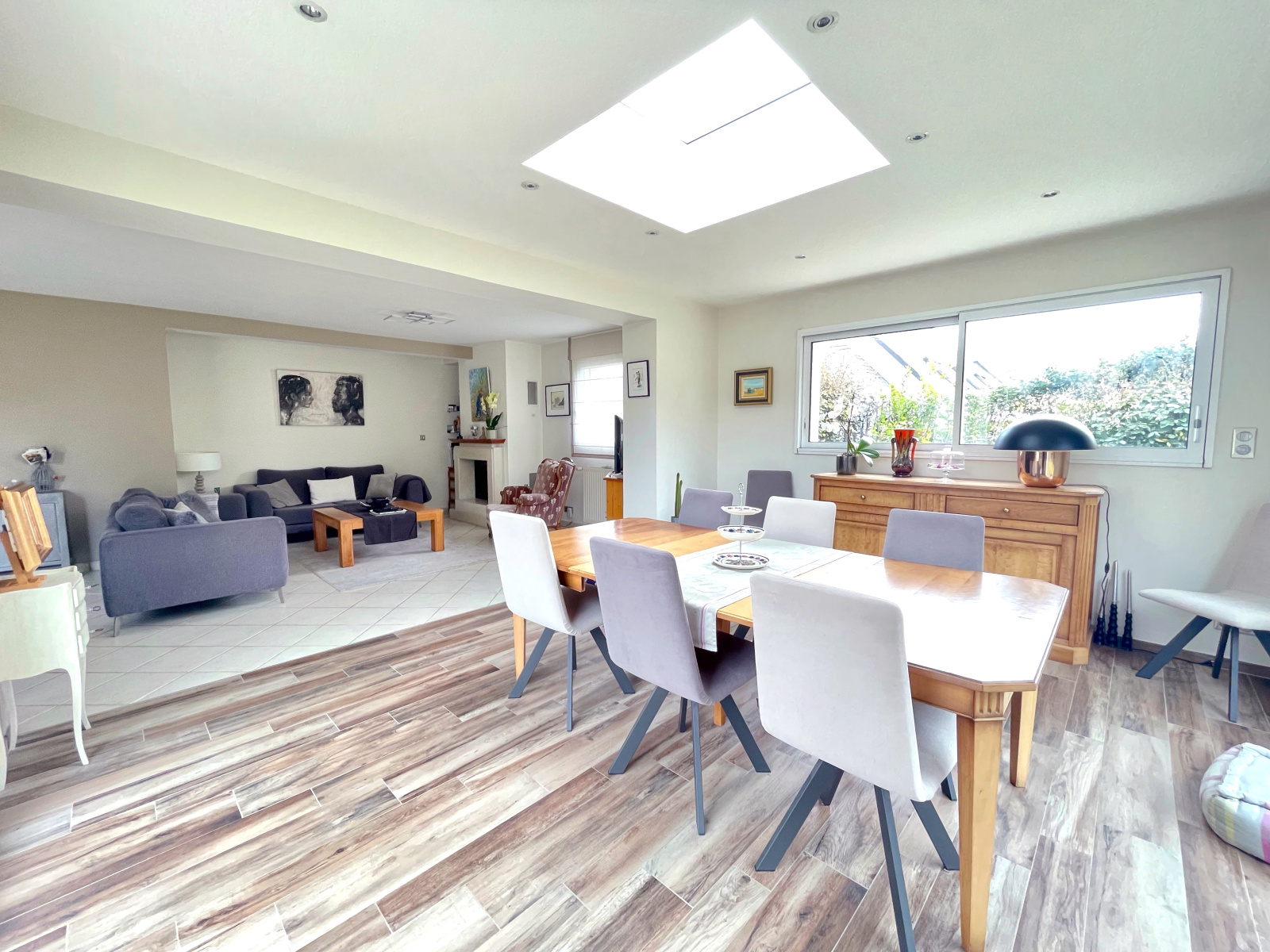 Avec baies vitrées donnant un accès direct sur la terrasse et le jardin