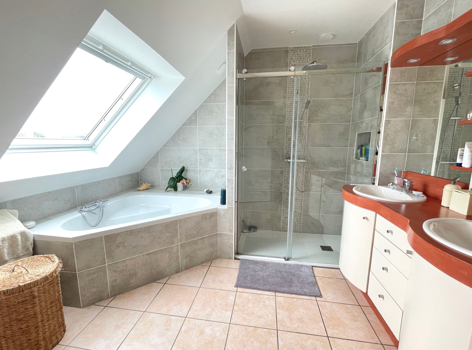 BAIGNOIRE & DOUCHE À L'ITALIENNE, 2 VASQUE ET MEUBLE