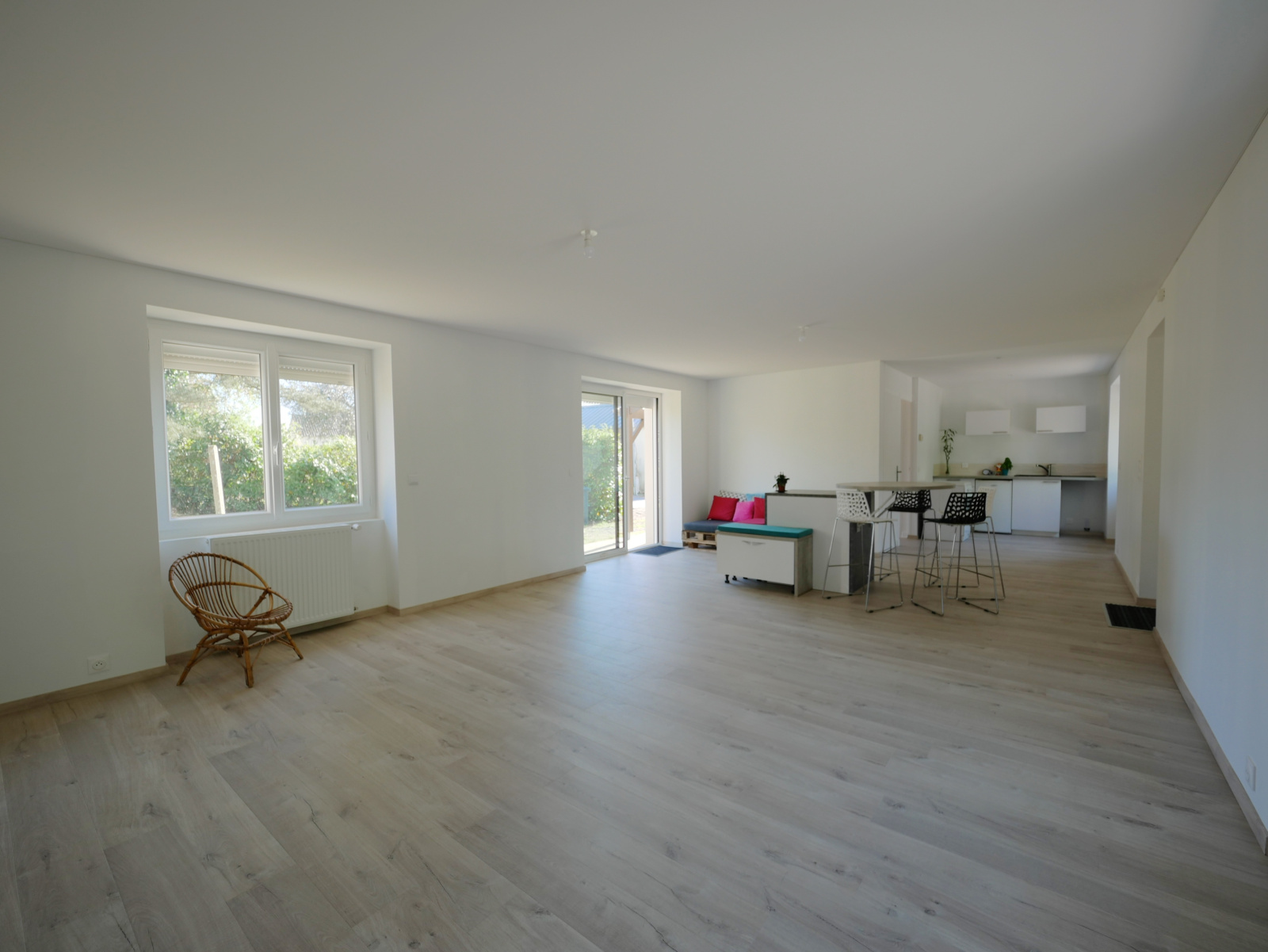 SAJA IMMOBILIER vous propose à MISSILLAC bourg, commerces à pieds, 10mn de PONCHATEAU et 30mn des plages. Posez vos valises dans cette maison de 140m² entièrement rénovée offrant au rez de chaussée, entrée, belle et lumineuse pièce de vie ouverte sur cuisine de 46m², chambre avec dressing, salle d'eau. A l'étage 3 grandes chambres et salle d'eau. Chaufferie et buanderie. Le tout sur un terrain d'environ 600m² exposé Sud. A voir rapidement !