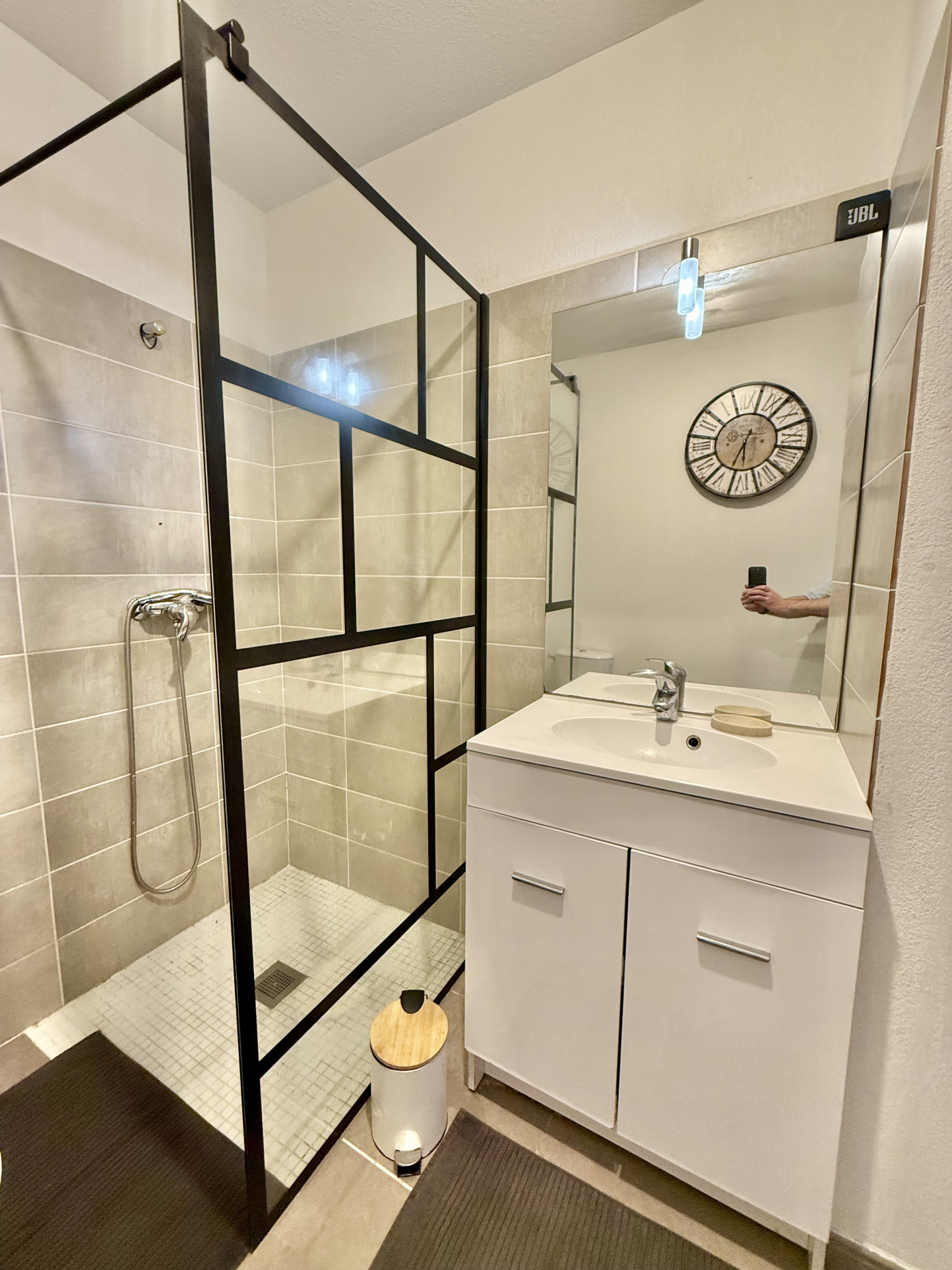 L’appartement se situe au 1 er étage, il bénéficie de 2 chambres de 12m2 et 9 m2, d’un séjour cuisine de 35m2 ainsi qu’une salle de douche avec WC de 4,51m2.