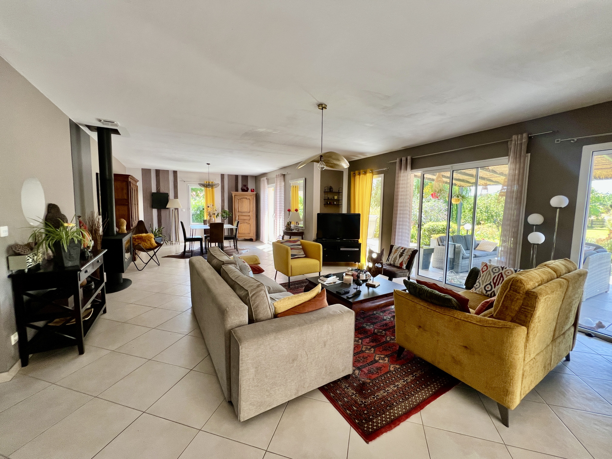 Vous serez charmé par ses beaux volumes, sa luminosité naturelle, sa distribution idéale avec 5 chambres, une chambre/sdo au rez-de-chaussée, une grande mezzanine ( possibilité d’une 6 e chambres).Les espaces de vie ouverts sur l’extérieur donnant sur une terrasse carrelée exposition sud avec une vue imprenable sur le jardin et son étang , sans aucun vis à vis