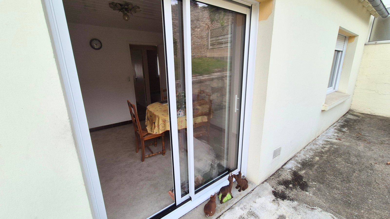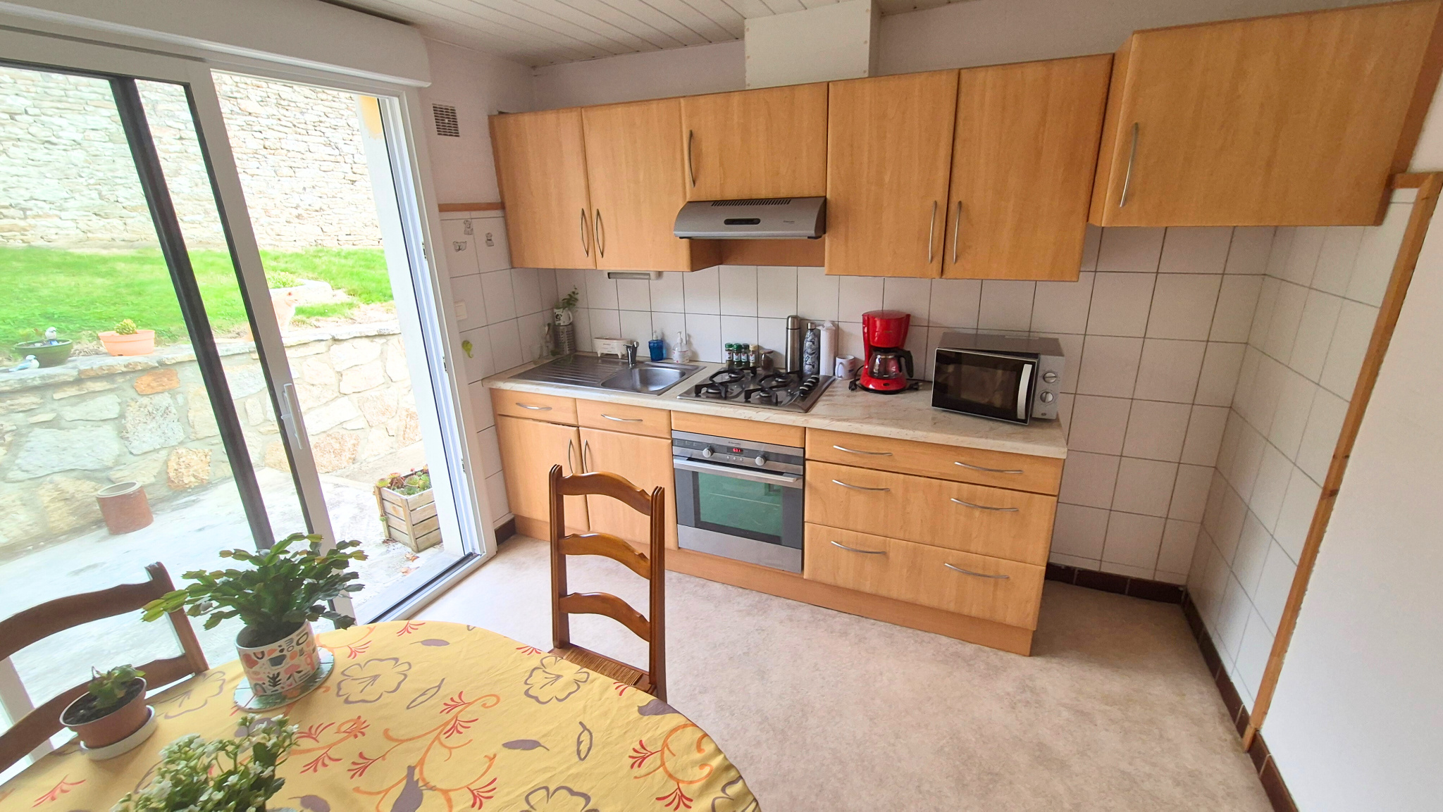 Elle se compose d'une entrée, un wc, une salle d'eau puis un couloir , un séjour, une cuisine aménagée et équipée donnant sur une belle terrasse et le jardin, deux belles chambres.