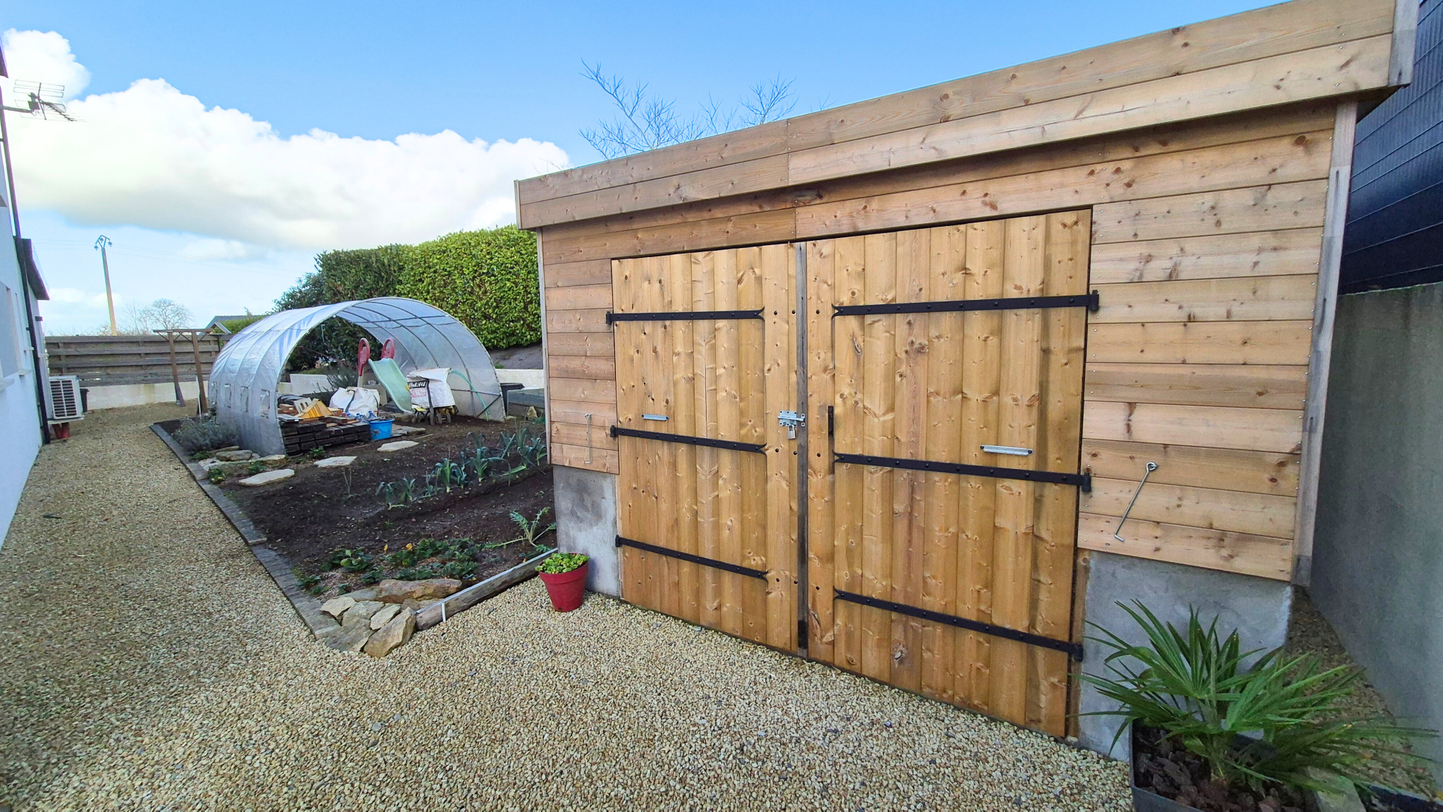 Côté pratique, un grand garage de 40 m² avec une porte sectionnelle automatique et beaucoup de rangements.