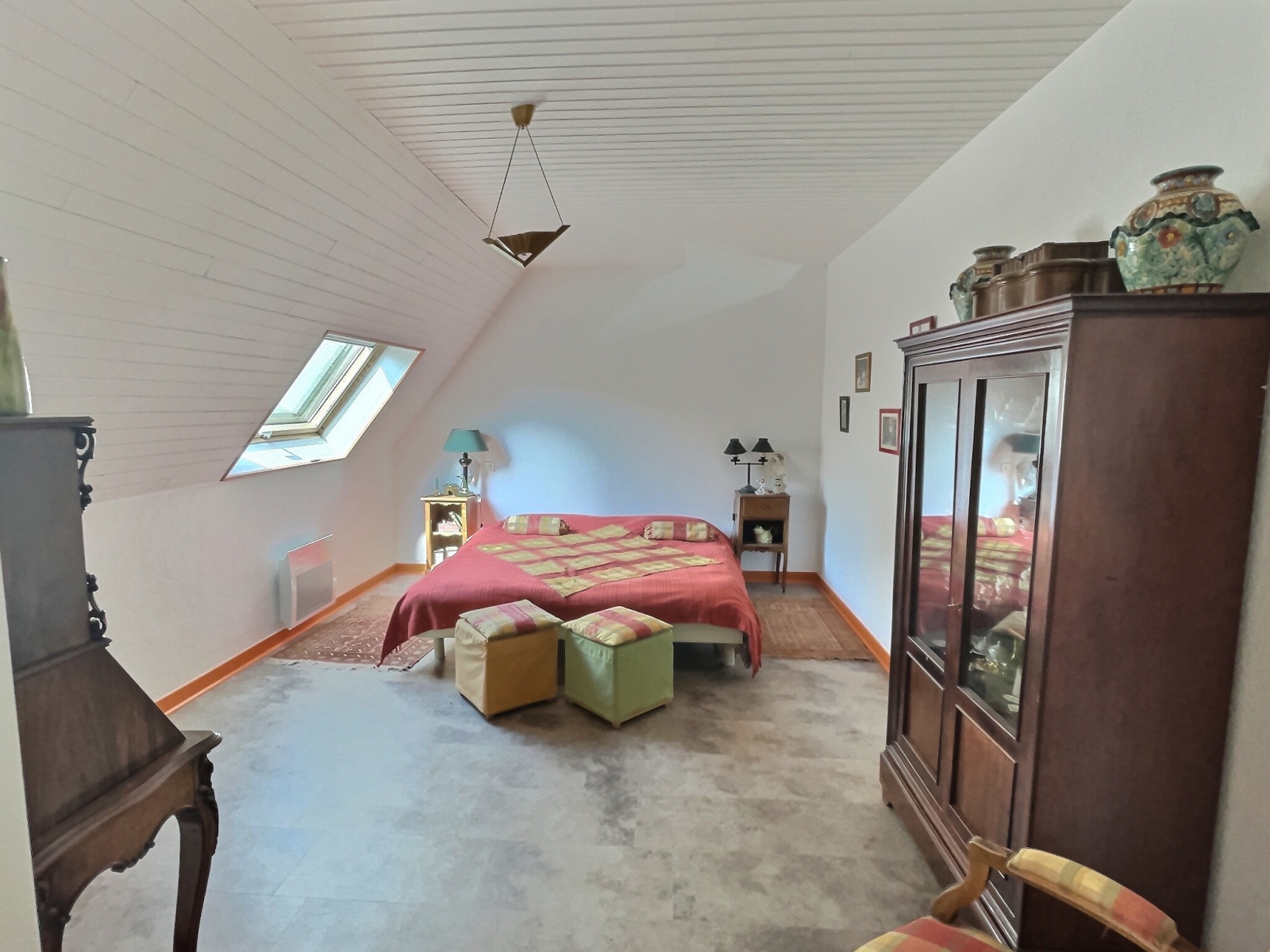 A l'étage, un pallier dessert deux belles chambres, une salle d’eau et un wc. Un immense grenier est en attente de nouveaux projets !