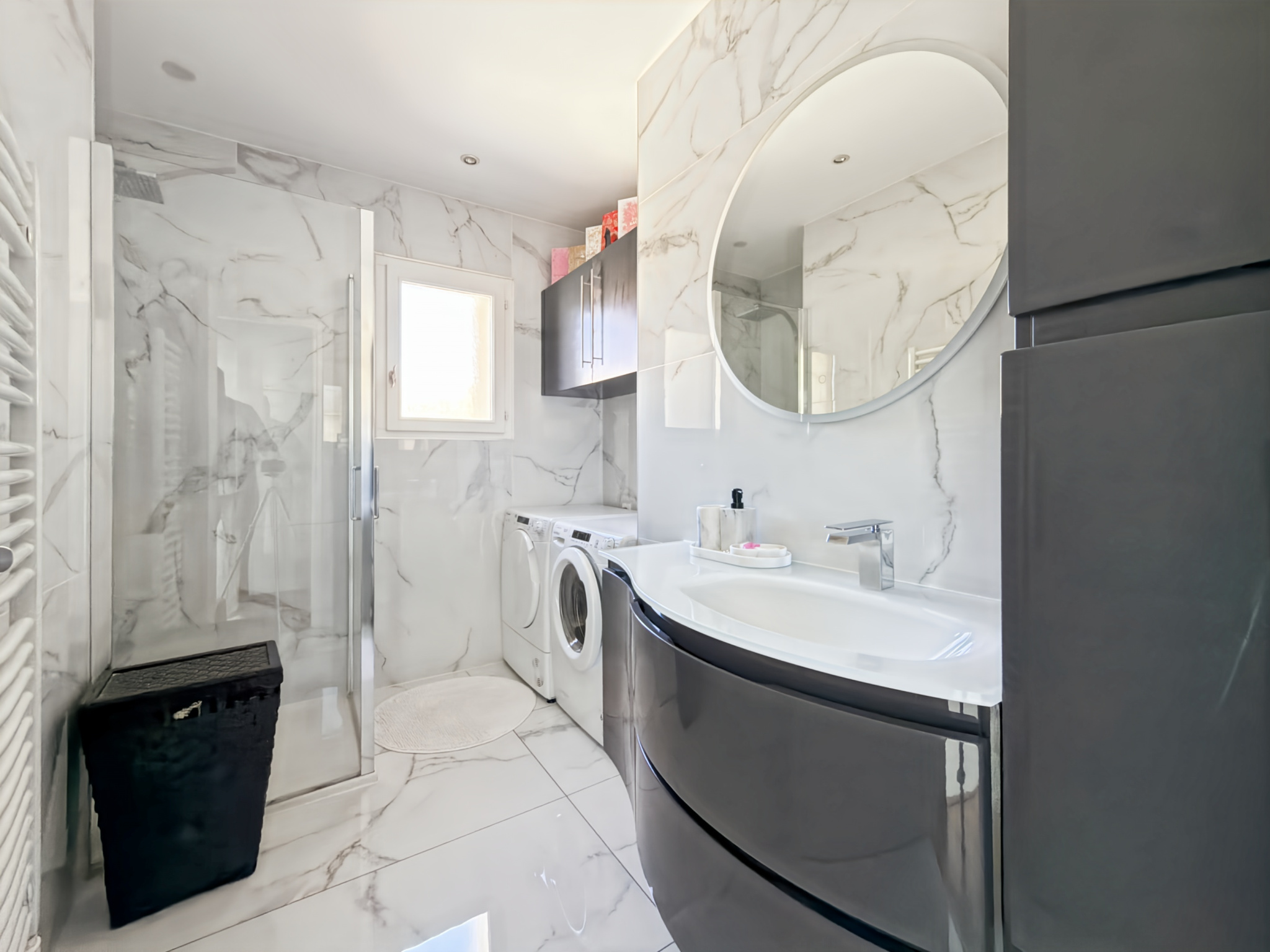 Au rez-de-chaussée, vous découvrirez une agréable pièce de vie composée d'une cuisine ouvertesur espace salle à manger,et d’un salon, formant un ensemble convivial avec accès directsur le jardin terrasse et son coin barbecue, idéal pour les moments en famille ou entre amis. Cet extérieur de 15 m² avec terrasse constitue un véritable atout, parfait pour profiter des beaux jours, aménager un espace détente ou prendre ses repas en extérieur.