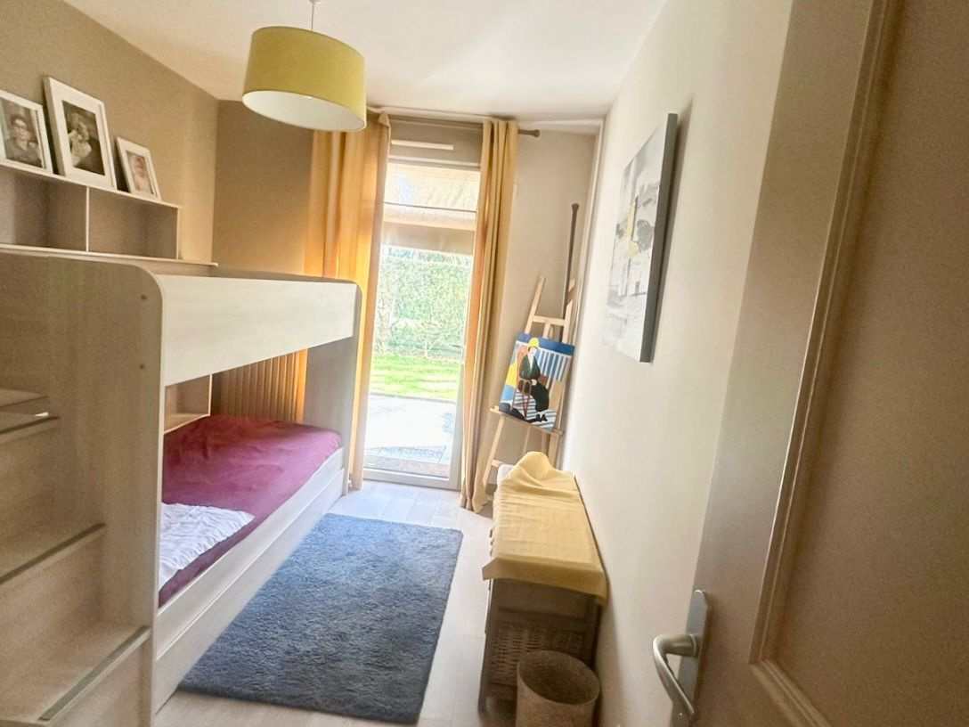 Vous profiterez d’une terrasse donnant sur un grand jardin privatif, d’environ 120 m², idéalement exposé et au calme.accessible directement depuis la cuisine, le salon et une des chambres, offrant une belle continuité intérieur / extérieur.
