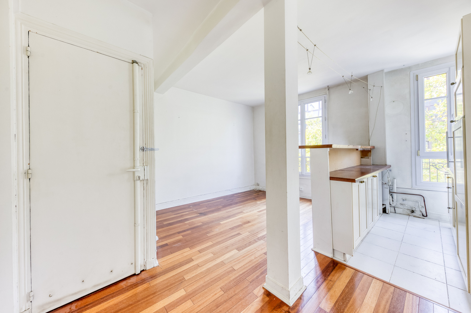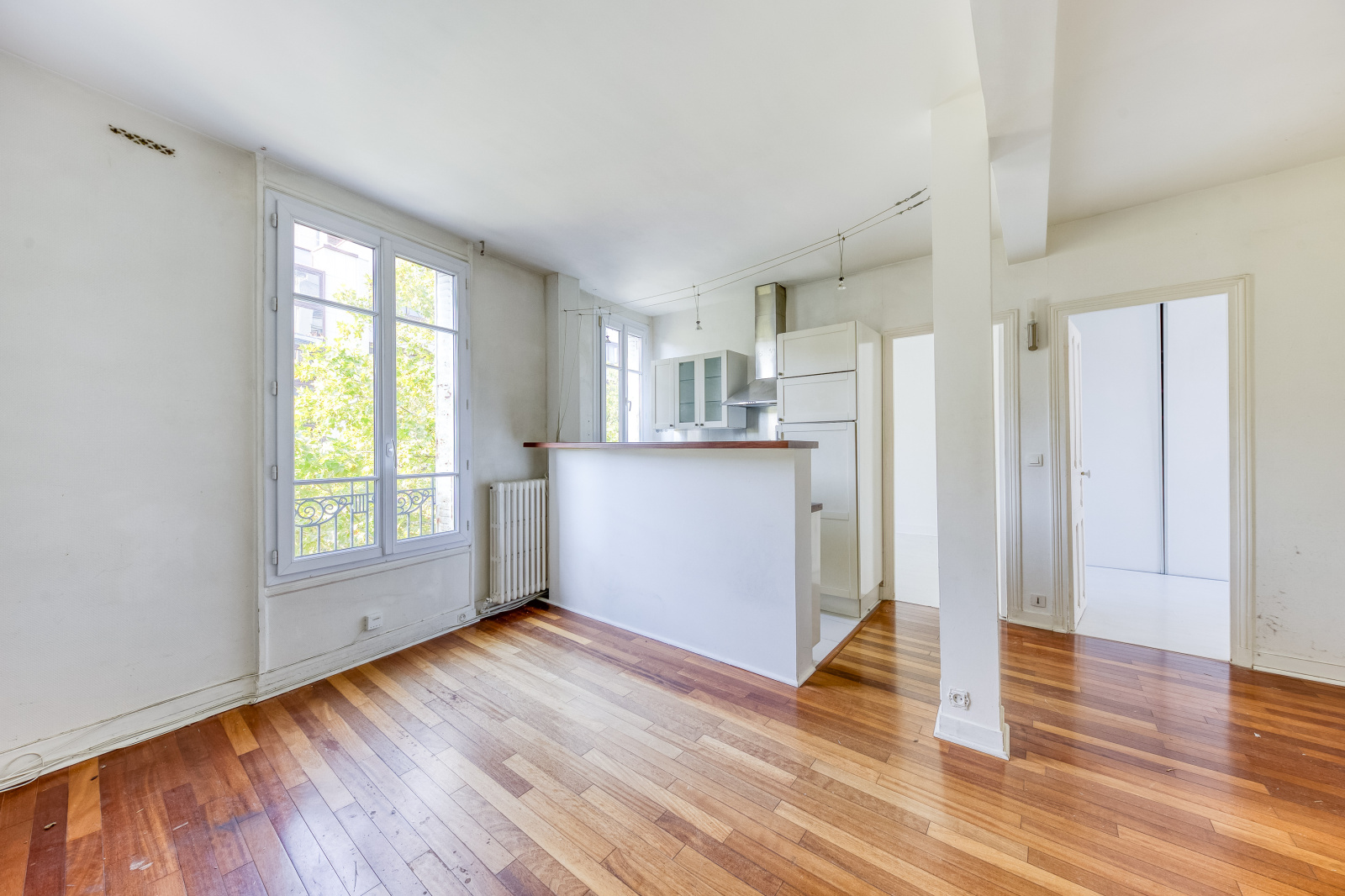Dans un immeuble ancien , en étage élevé , plein soleil , je vous propose ce trois pièces comprenant une entrée donnant sur le salon et sa cuisine américaine toute équipée , Vous y trouverez deux chambres avec placards , une salle de bain et un wc.Il faut prévoir des travaux de raffraichissement .