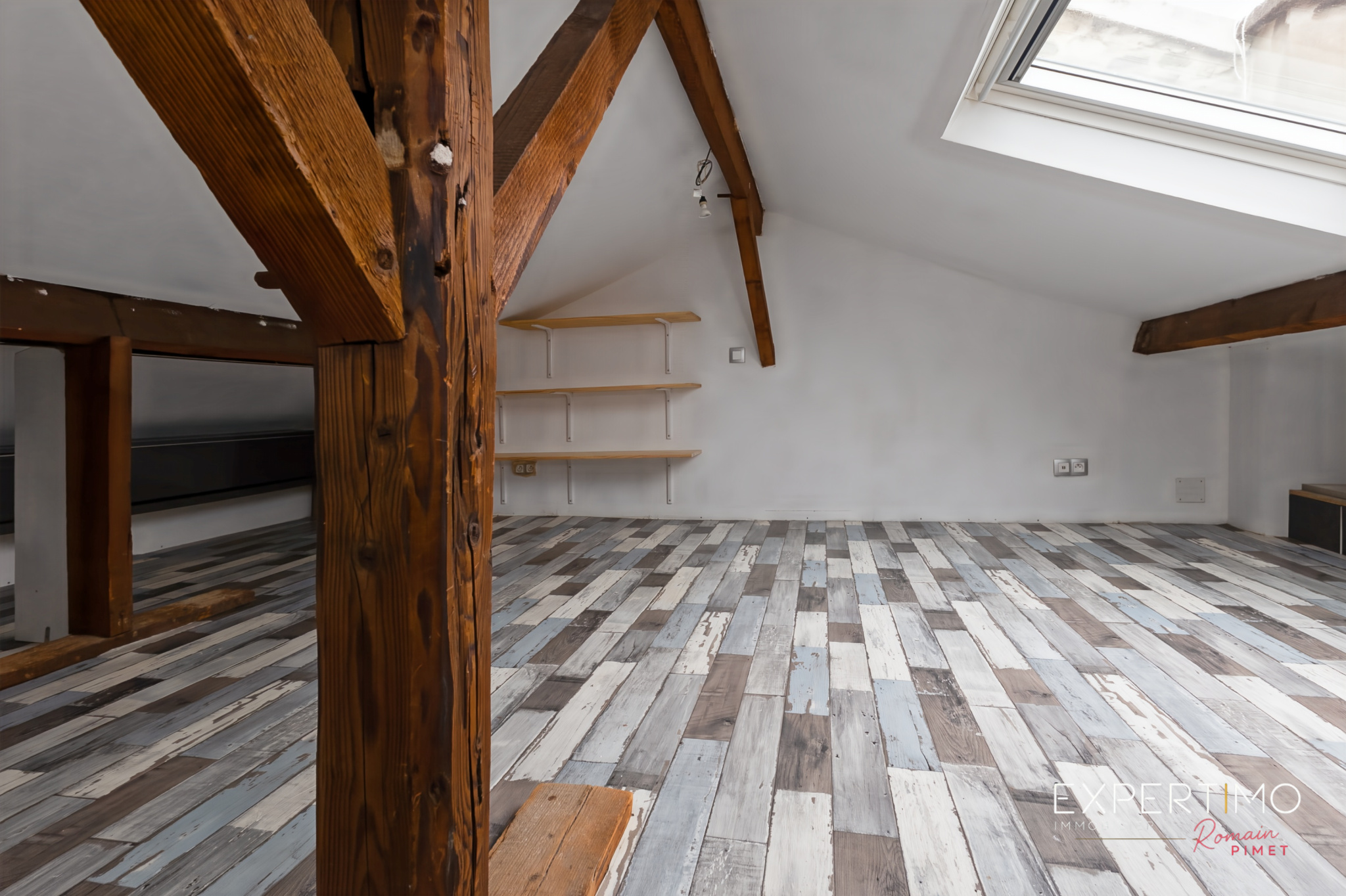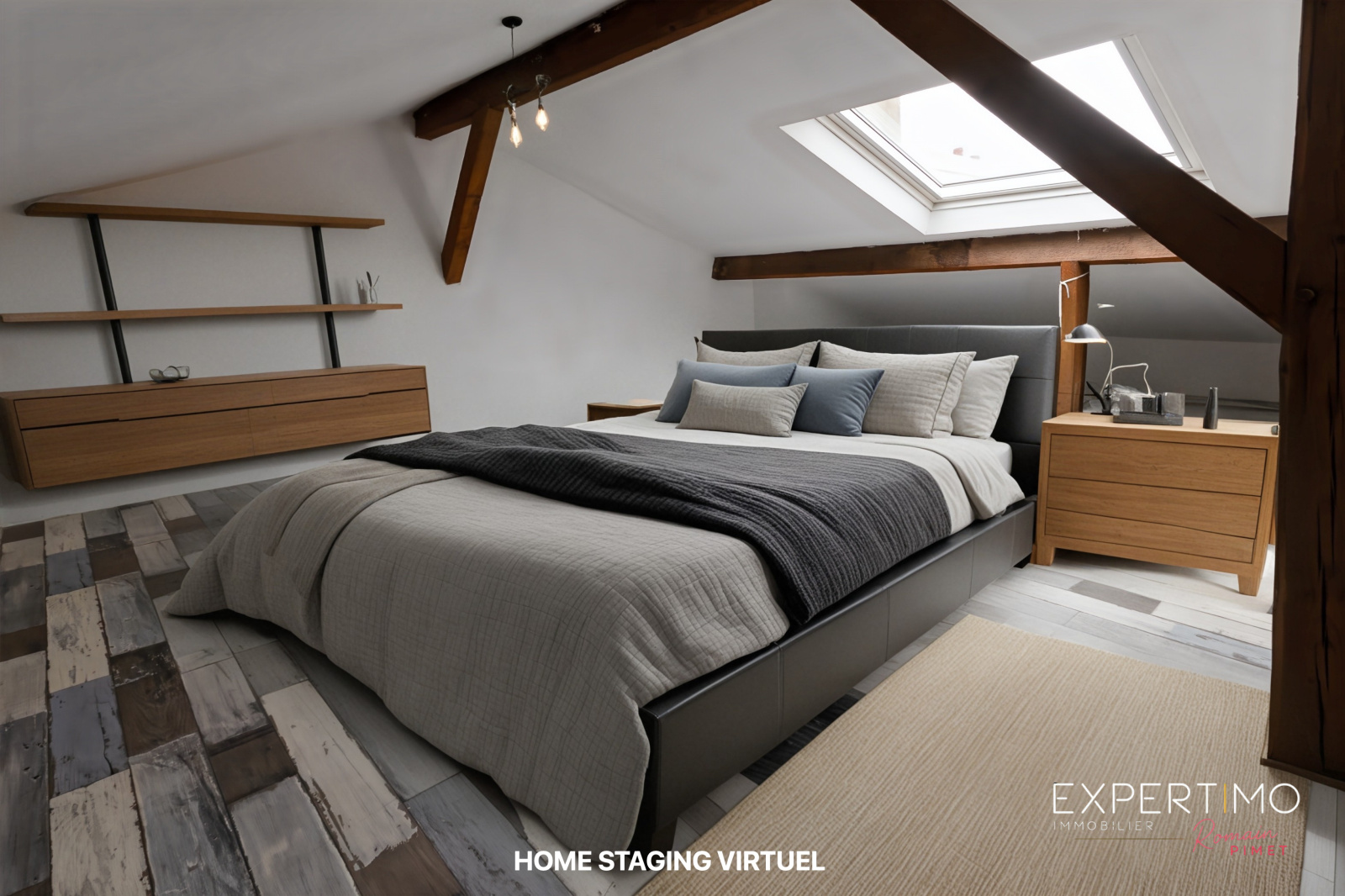 Les combles ont été aménagés pour créer une seconde chambre d’environ 26 m² au sol, idéale pour un espace nuit supplémentaire, un bureau ou une salle de loisirs.