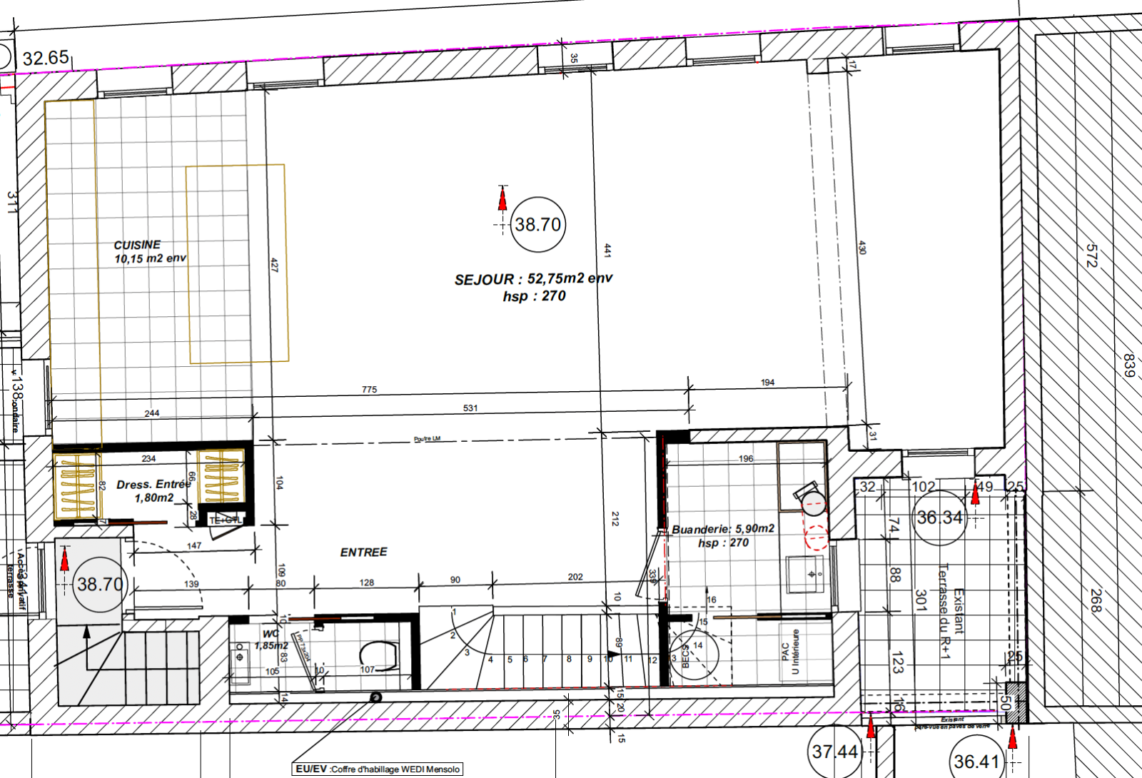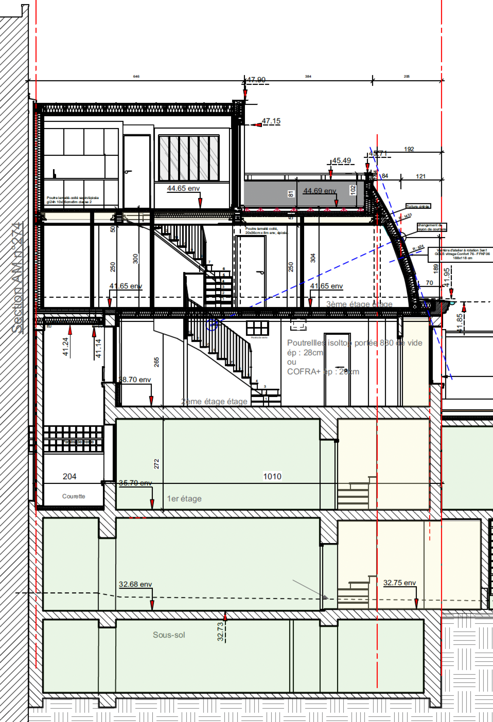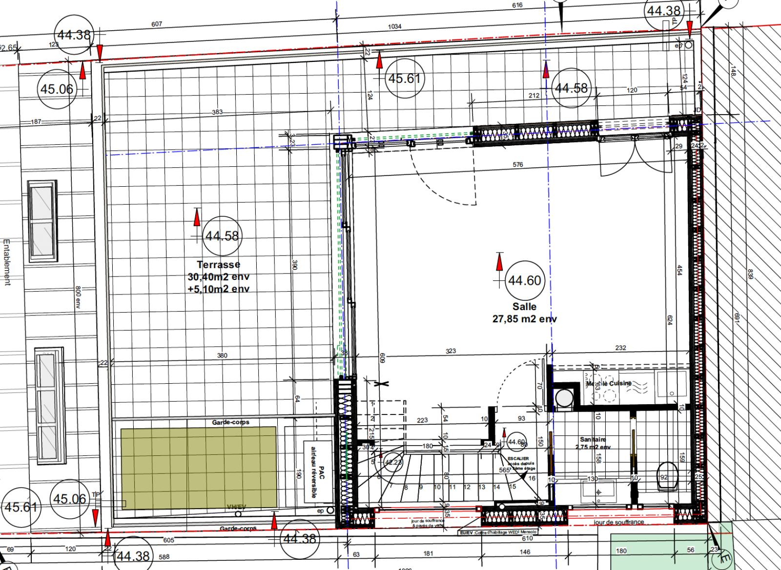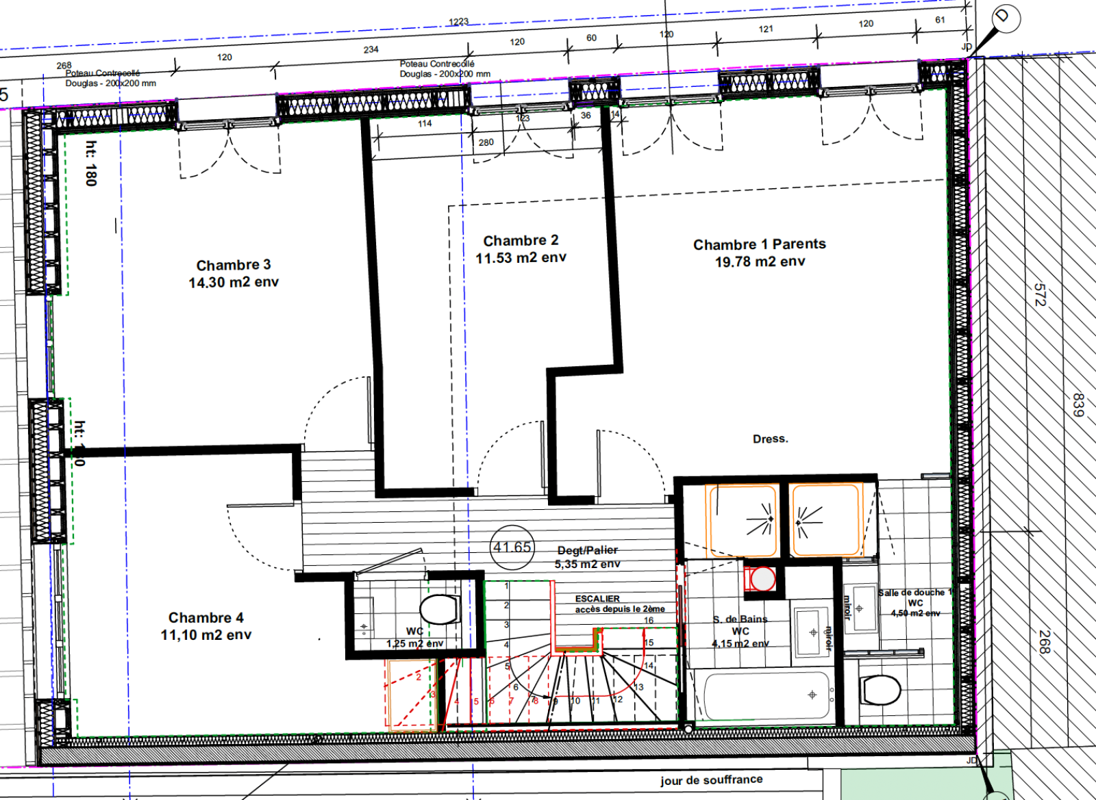 Surface habitable après surélévation : env. 185 m²