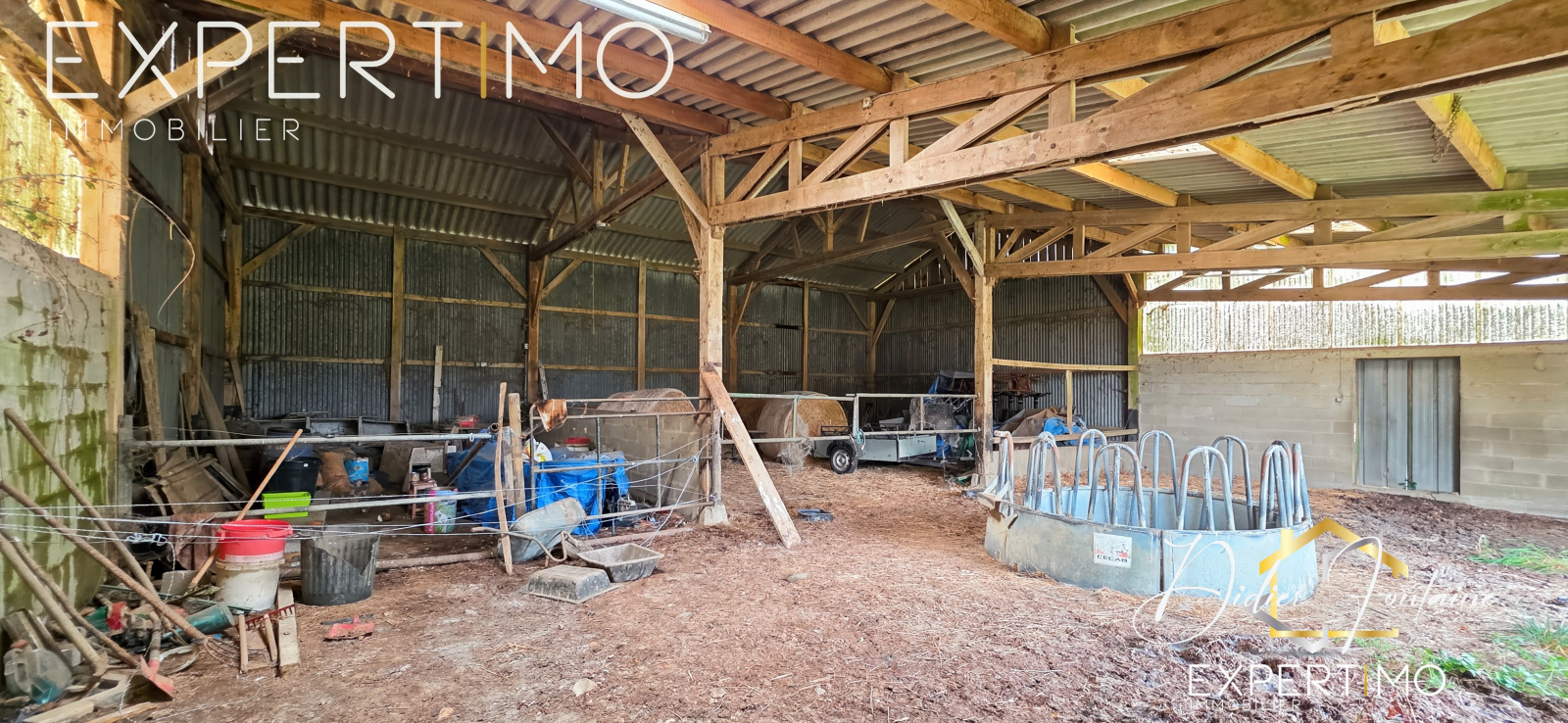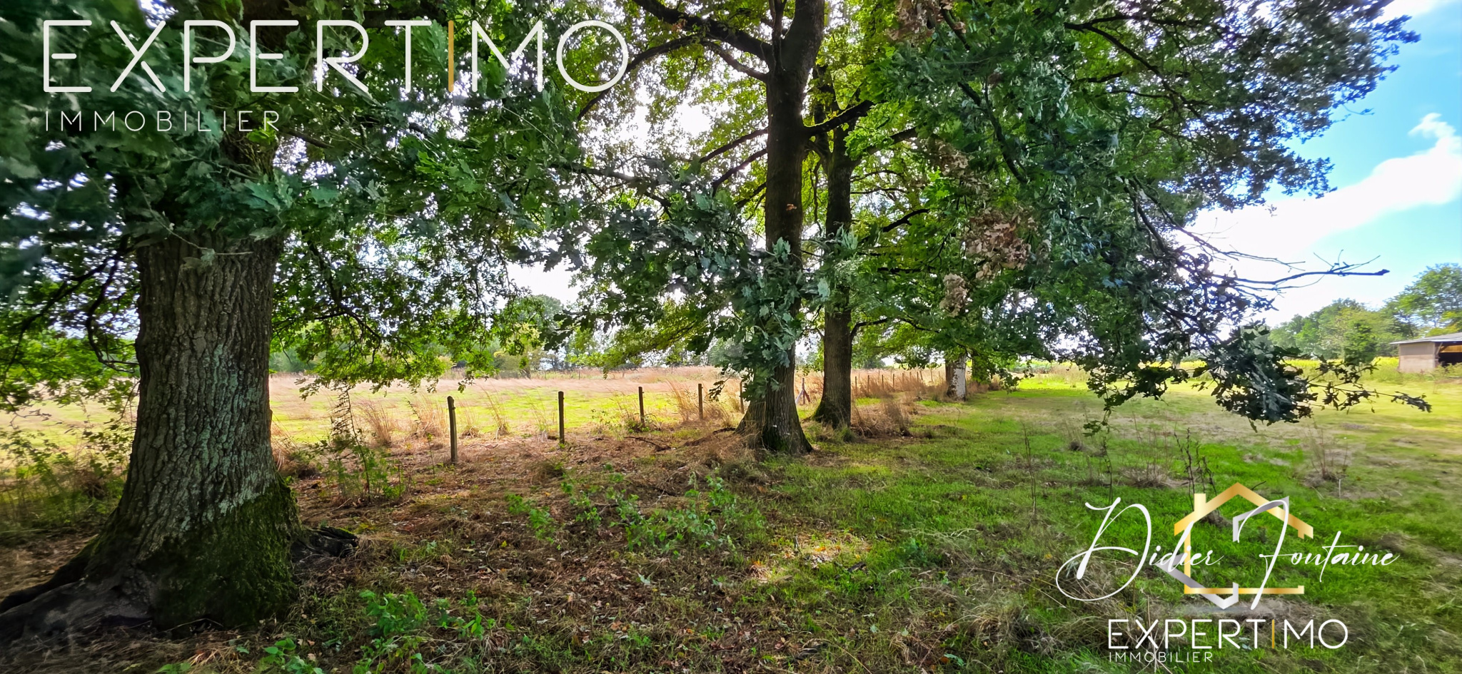 À vendre : 2 hectares de terrain arboré, entretenu en bio, avec chênes centenaires et clairières. Le bien dispose d’un grand hangar de 230 m² + annexes 40 m², parfait pour aménager box, sellerie ou stockage de fourrage.