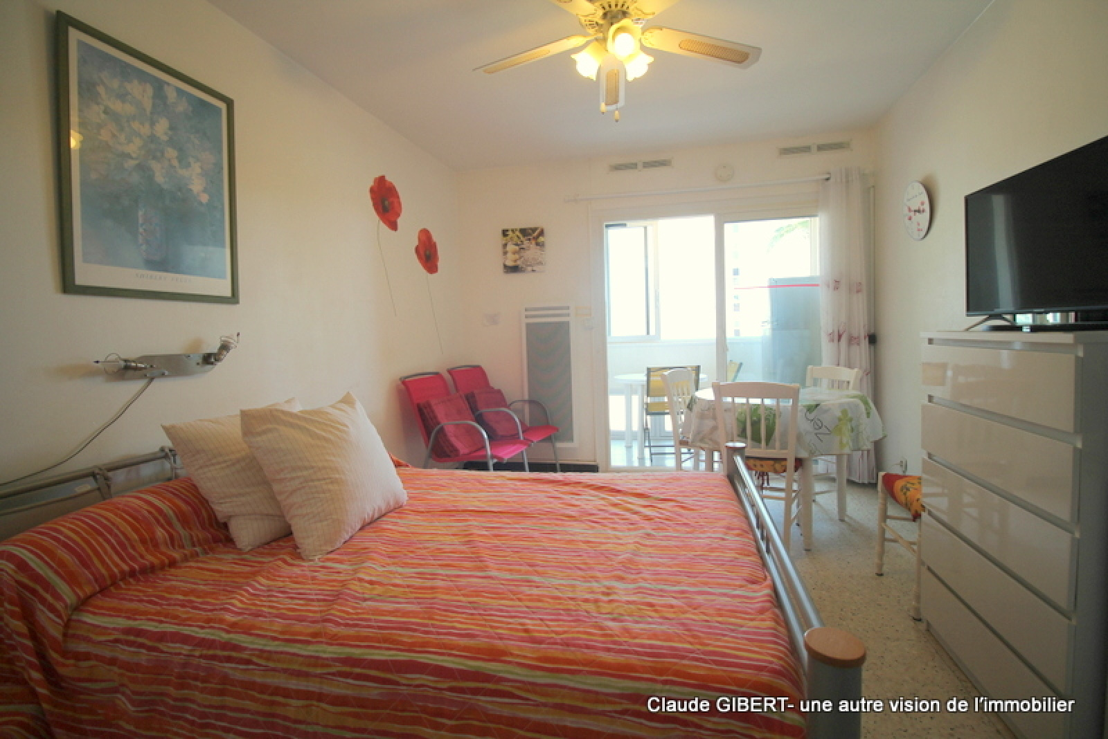 L'appartement se compose d'une entrée / coin cuisine, une salle d'eau avec un WC, une piéce à vivre ainsi qu'une loggia donnant sur le parc Charles De Gaulles.