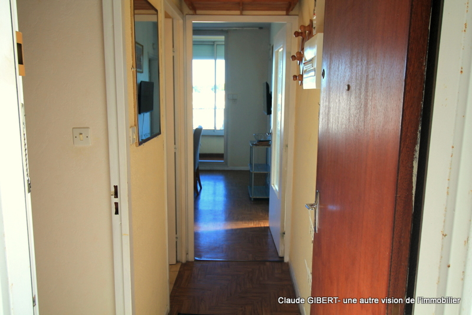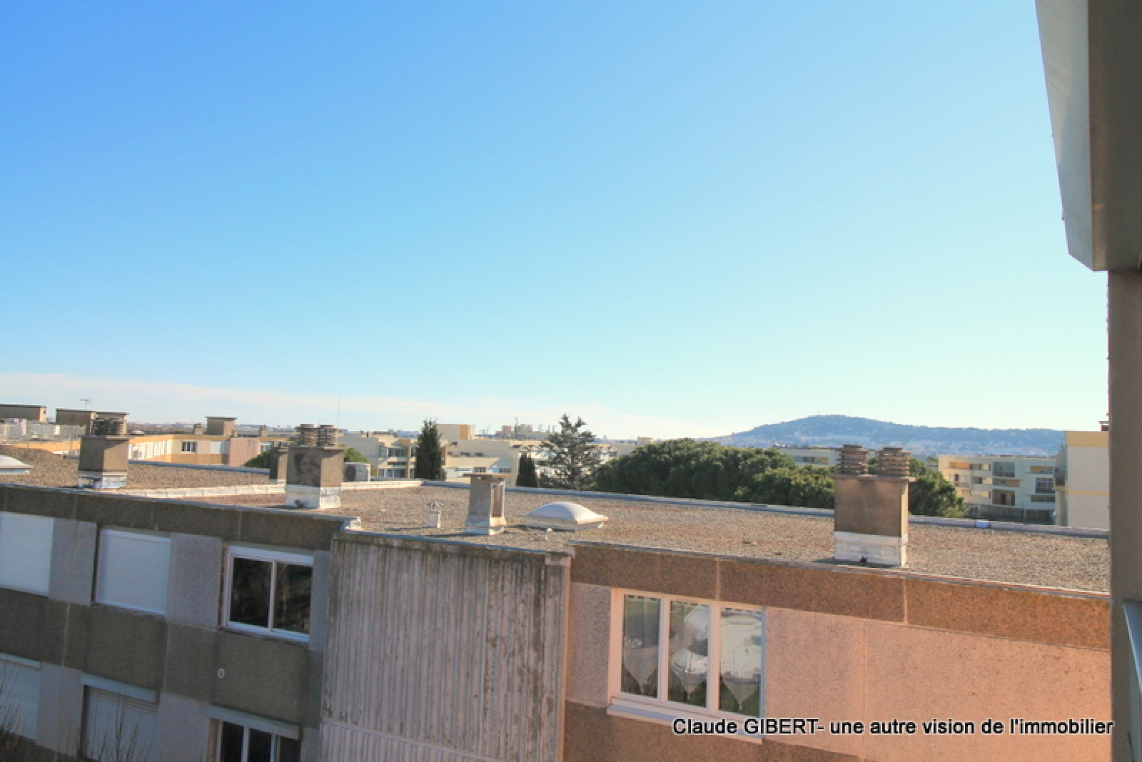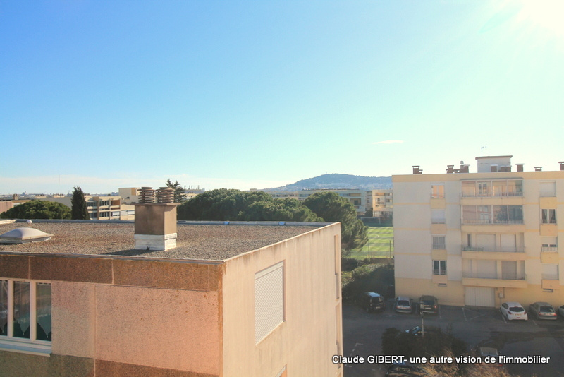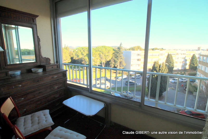 Il se compose d'une entrée, un wx séparé, une salle de bains, une cuisine séparée, un espace séjour/salon, "une chambre" et une loggia d'où l'on peut apprécier la vue dégagée en partie sur la garrigue, les toits et sur la droite le Mont Saint-Clair !Â
