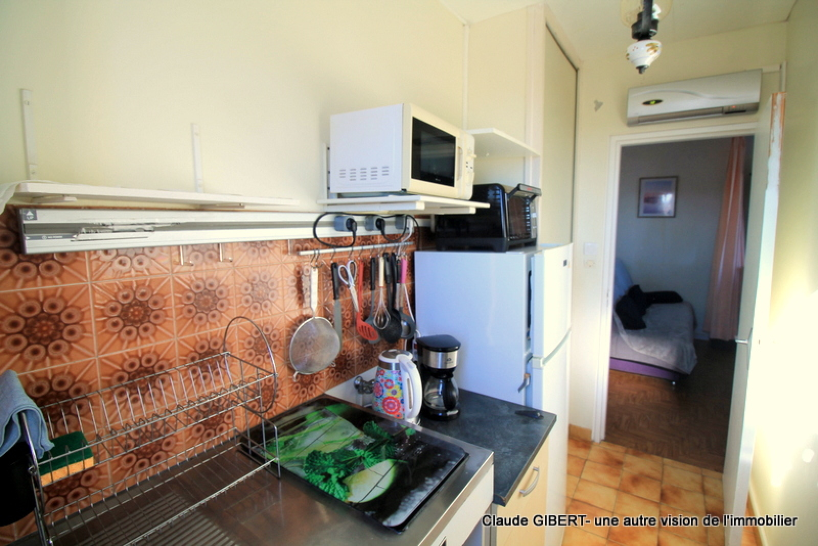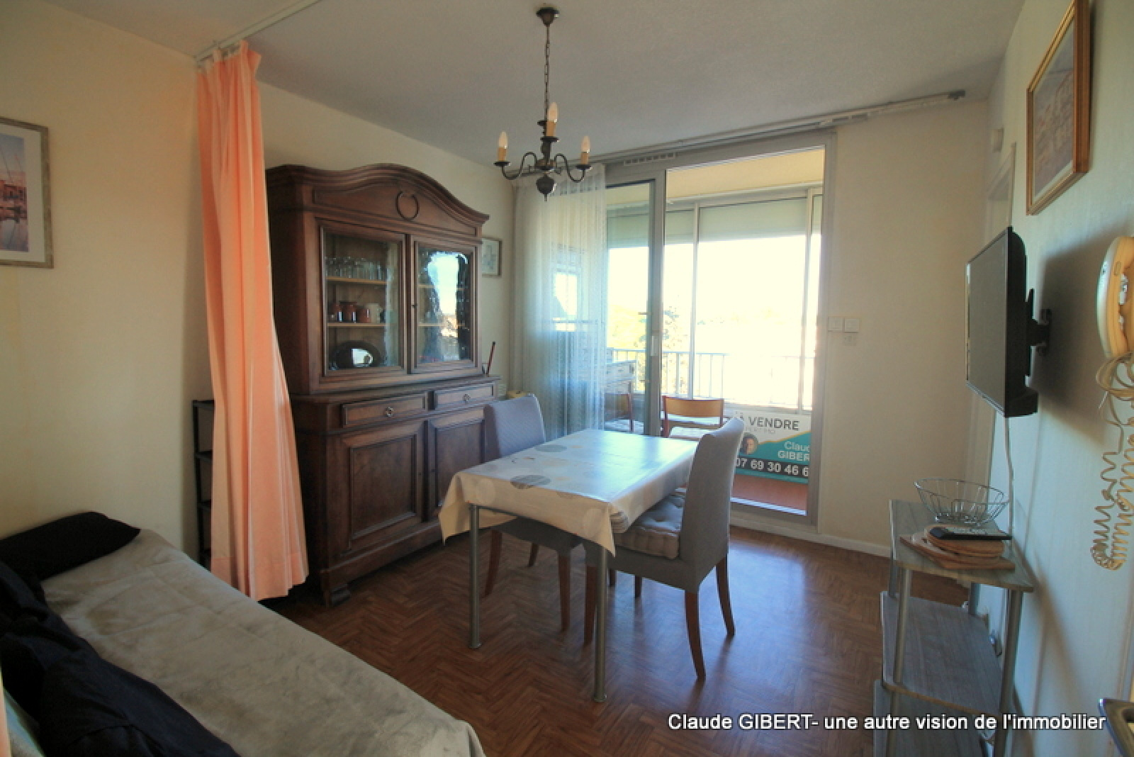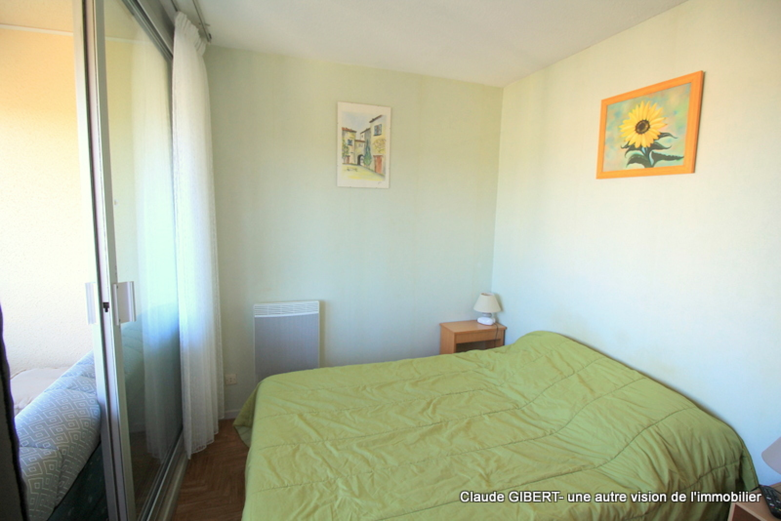 Il se compose d'une entrée, un wx séparé, une salle de bains, une cuisine séparée, un espace séjour/salon, "une chambre" et une loggia d'où l'on peut apprécier la vue dégagée en partie sur la garrigue, les toits et sur la droite le Mont Saint-Clair !Â