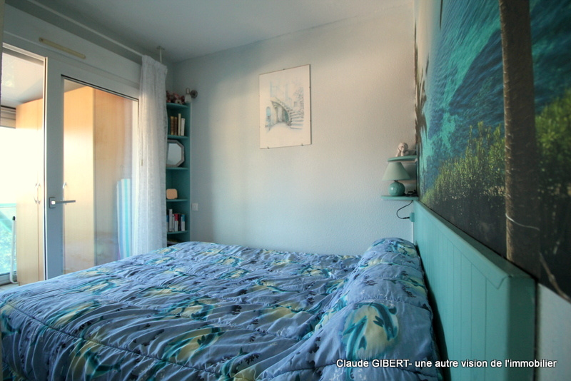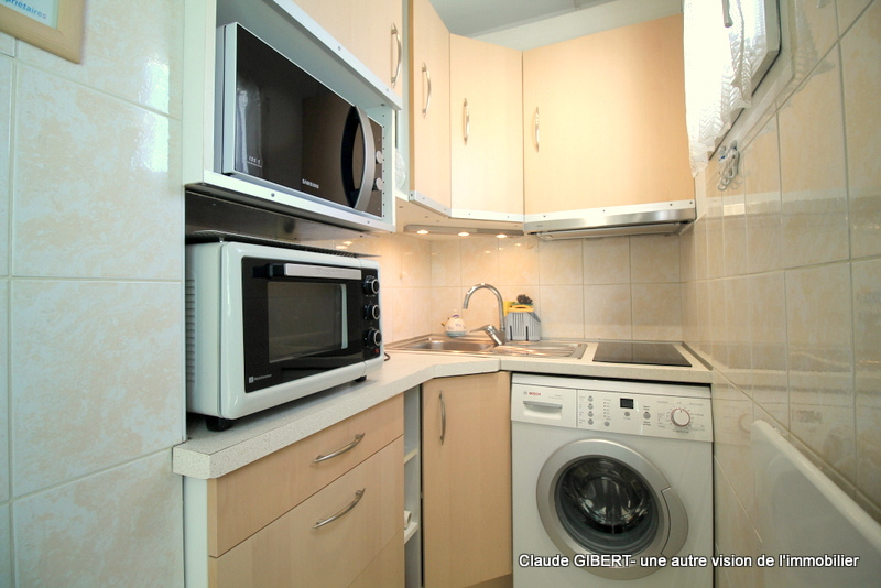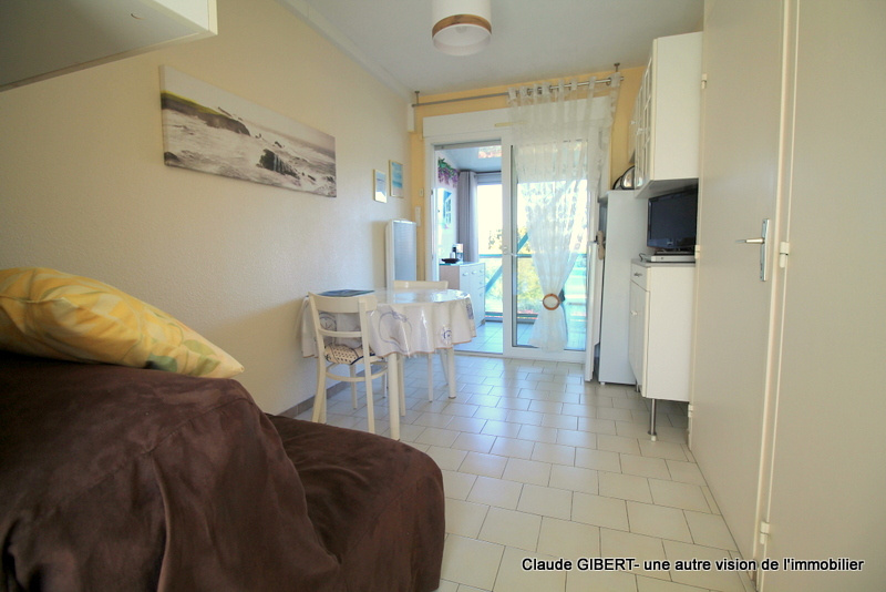 Il se compose d'une entrée, un wc séparé, une kitchenette trés bien équipée et agencée, une salle d'eau, un espace séjour/salon, une petite chambre et une belle loggia donnant sur la verdure, sans aucun vis à vis.