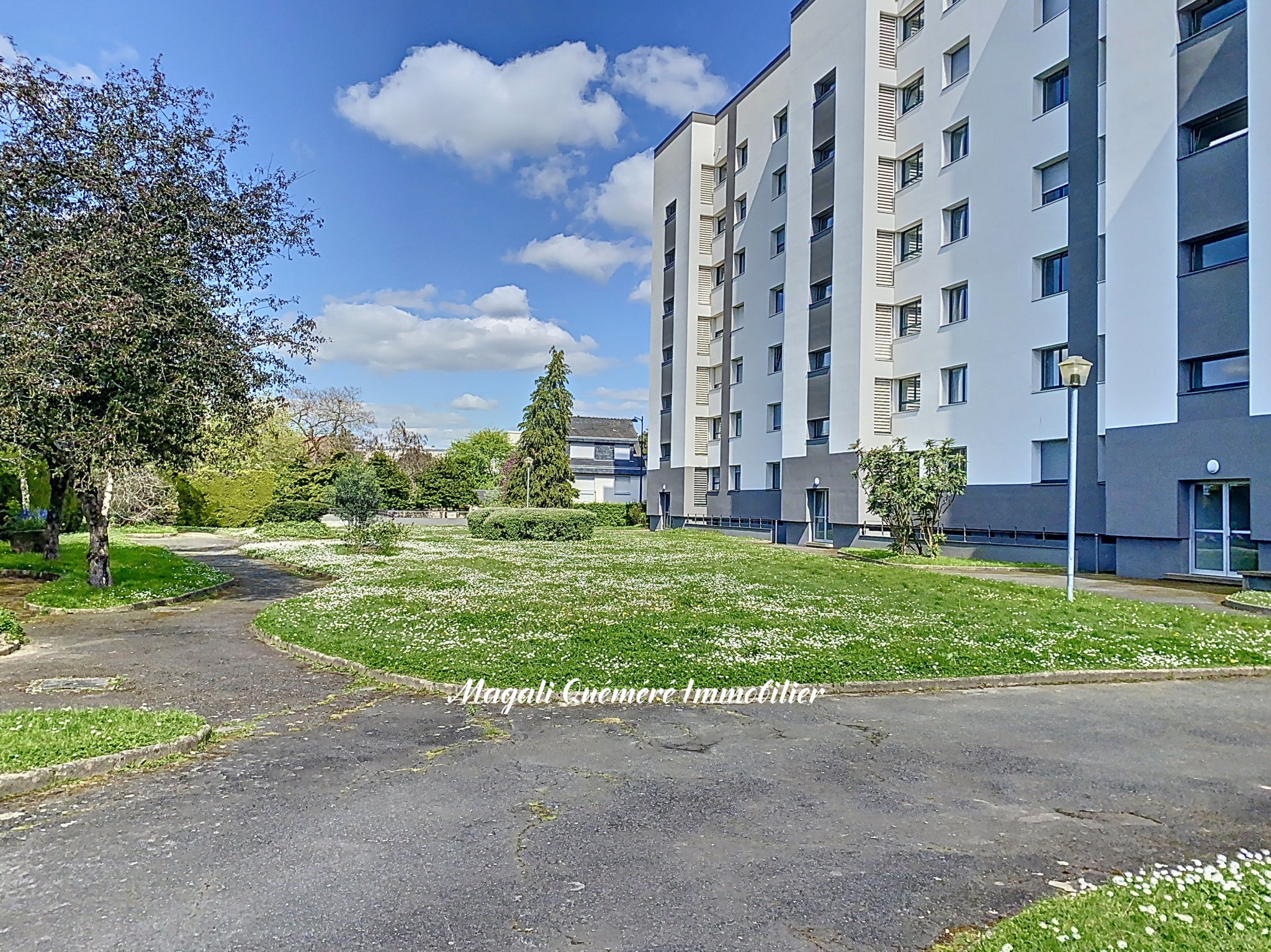 Appartement situé au 1er étage d'un immeuble avec ascenseur, édifié sur une parcelle de 4843 m² offrant des espaces verts au pied de l'immeuble. Surface au sol 58 m².