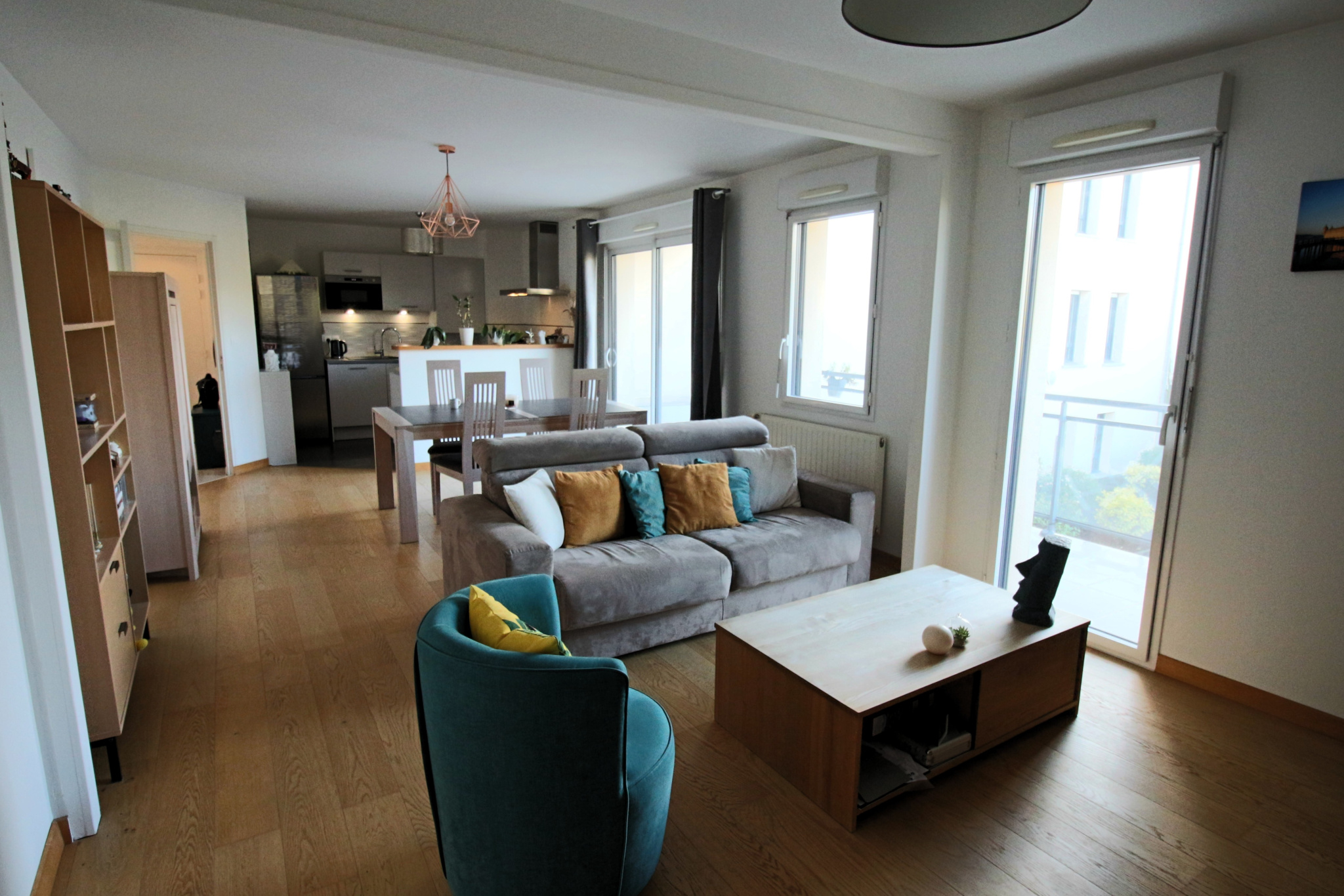 - Agencement optimisé : Salon-séjour spacieux, cuisine ouverte aménagée et équipée.