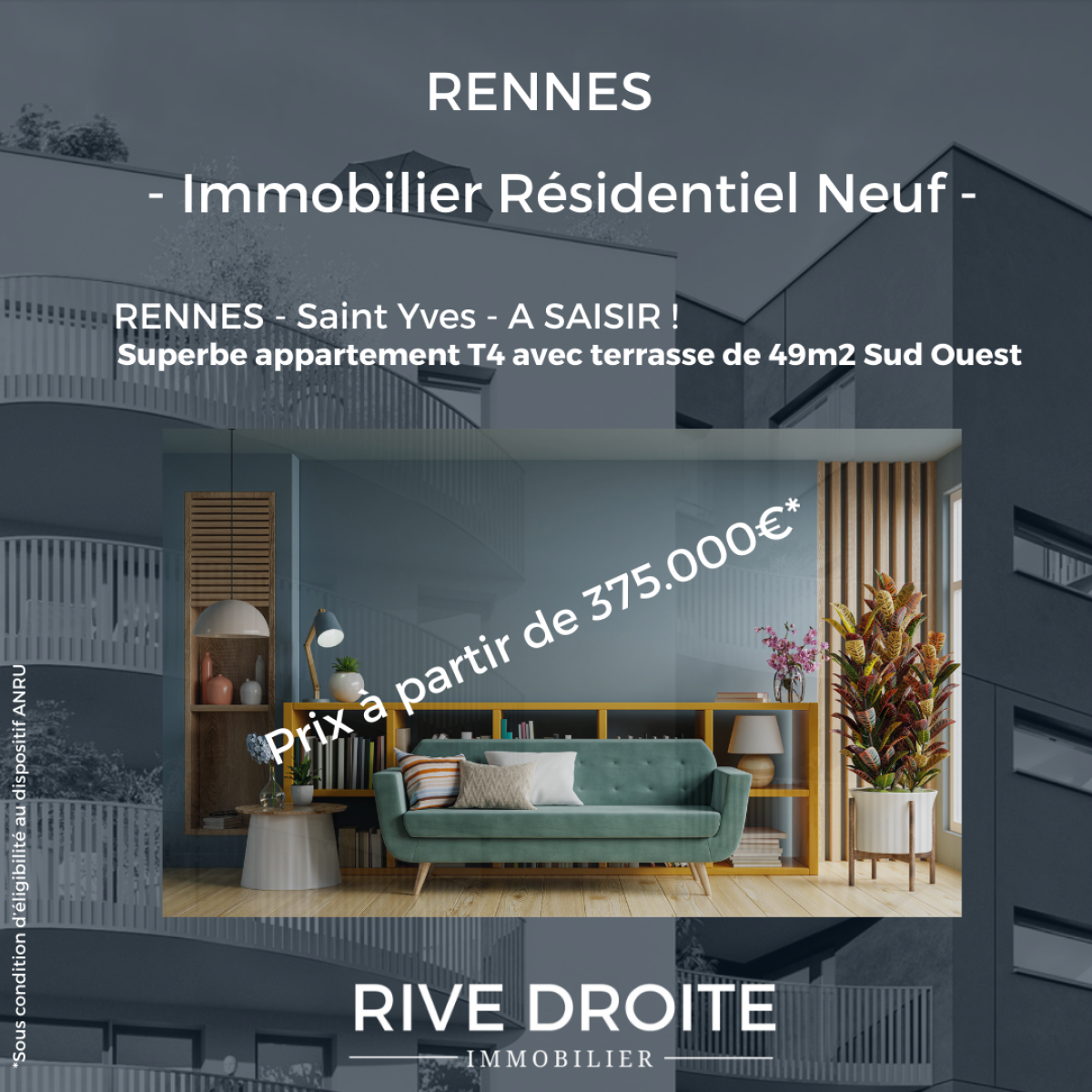 - Elegante résidence à l'architecture soignée, découvrez ce magnifique T4 avec TERRASSE DE 49M2 SUD OUEST bien agencé, comprenant une belle pièce de vie donnant sur superbe terrasse 3 chambres dont une de plain pied, salle de bains, salle d'eau, wc, cellier, bureau ou grand dressing- parking - ELIGIBLE PRET a TAUX ZERO et de la TVA REDUITE 5.5%, pour acquérir dans les meilleurs conditions cette belle opportunité - (Prix affiché en TVA 5.5%, sous reserve d'éligibilité, prix en TVA 20%: 426.540€) - FRAIS DE NOTAIRE REDUITS - DISPONIBLE DEBUT 2027 - Ce logement a toutes les qualités pour vous séduire -Â