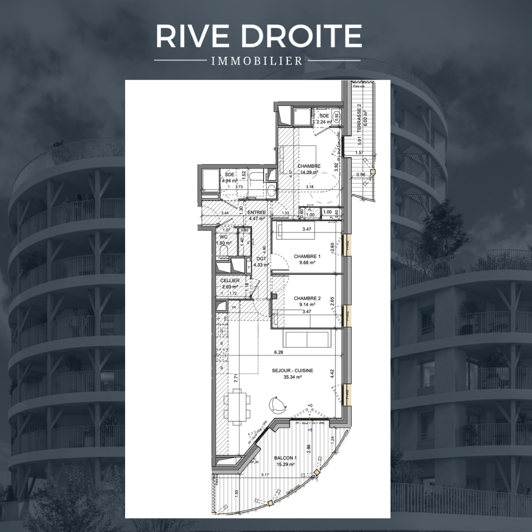 RIVE DROITE vous propose : OPPORTUNITE A NE PAS MANQUER - RENNES Bd Voltaire - Emplacement idéal à 750m du halage et des bords de Vilaine pour de belles ballades, du métro Anatole France à 6min à pied, découvrez cette belle résidence à l'architecture très moderne. Découvrez sans tarder ce SUPERBE T4 avec TERRASSE et STATIONNEMENT, 3 CHAMBRES - INVESTISSEMENT DE QUALITE - ENVIRONNEMENT RECHERCHE - FRAIS DE NOTAIRE REDUITS - ELIGIBLE PRET A TAUX ZERO - DISPO 2028 - RARE SUR LE MARCHE - RESERVEZ LE DES MAINTENANT !Â