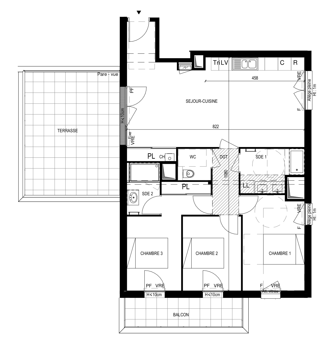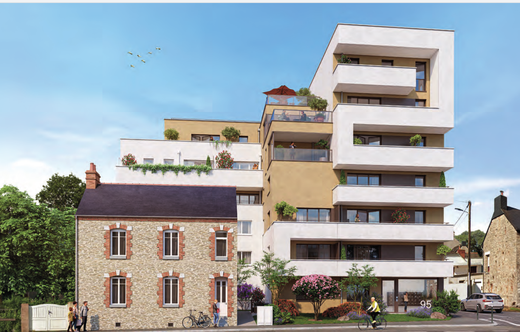 RIVE DROITE Agence de Rennes - Yonathan Sourigon vous propose cette belle opportunité à SAISIR. RENNES - Rue de Chateaugiron - Au coeur d'un quartier résidentiel, découvrez cette charmante résidence à l'architecture mêlant modernisme et le charme de la pierre existante, idéalement située à 200m du parc du Landry, futur Trambus, écoles du Landry et équipements sportifs du cercle Paul Bert à proximité. 10 min en voiture du centre ville et 5 min de la gare en vélo. Superbe appartement T5 avec TERRASSE OUEST de 26m2 situé en DERNIER ETAGE de la résidence comprenant: Entrée, séjour-salon de 36m2 donnant sur la grande terrasse, 3 chambres, 2 salle d'eau WC. Stationnement. Dispo 2027. RARE A LA VENTE