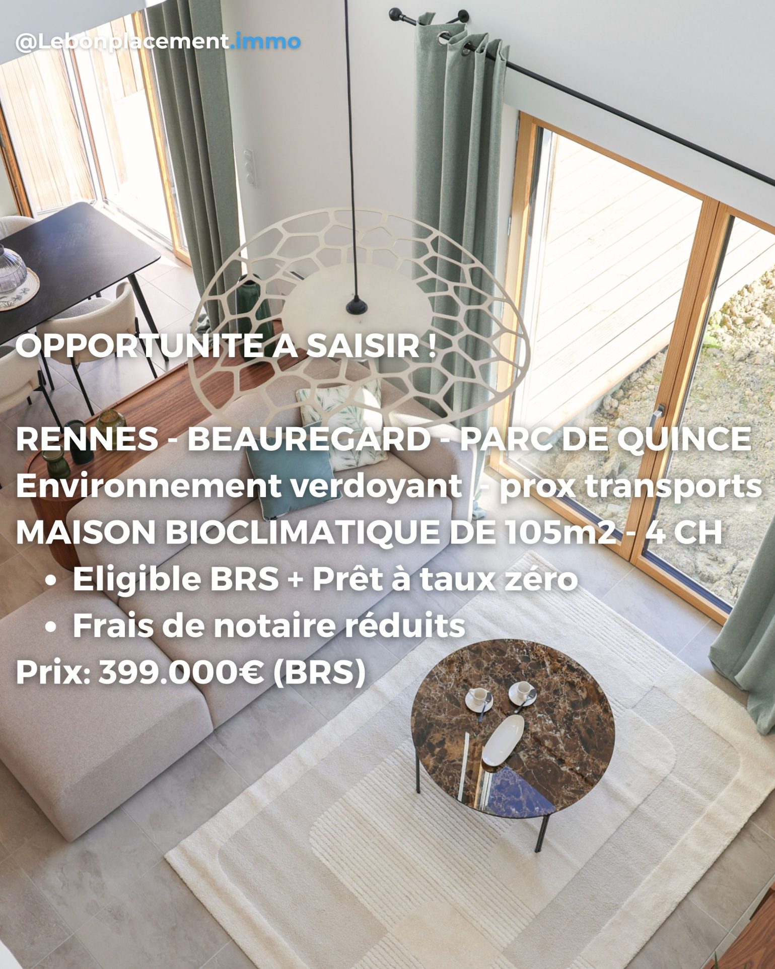 RENNES - BEAUREGARD dans un cadre agréable, à proximité immédiate du parc de Quincé et des transportsÂ