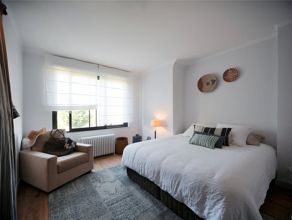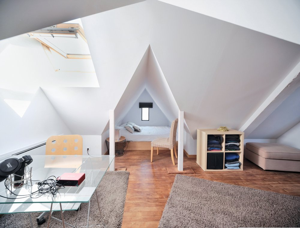 Le dernier étage sous comble est aménagé en une grande chambre.