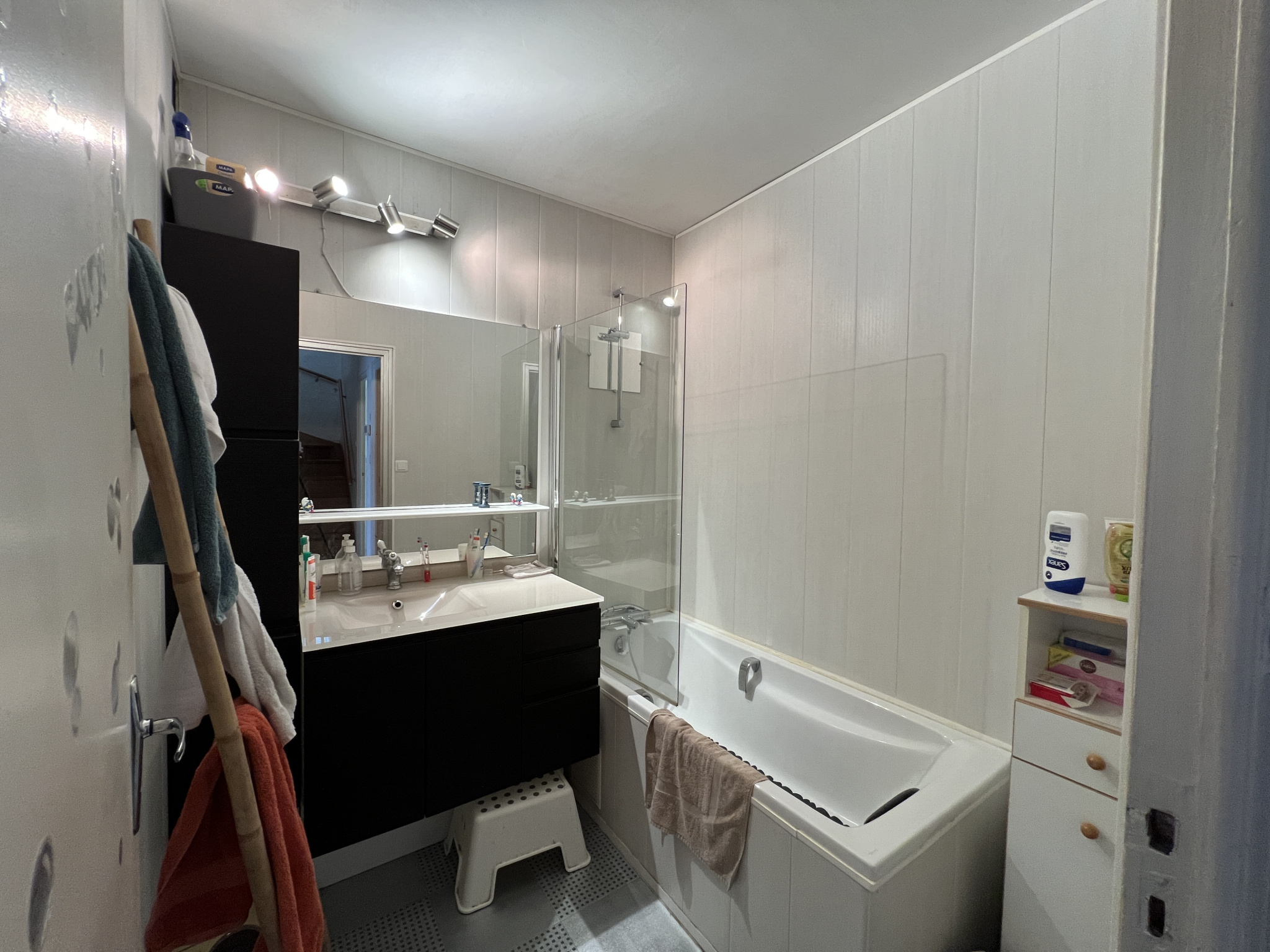 Elle se compose d'une entrée, une cuisine équipée aménagée séparée ( possibilité de l'ouvrir) , un salon/ séjour donnat sur le jardin exposé Ouest.