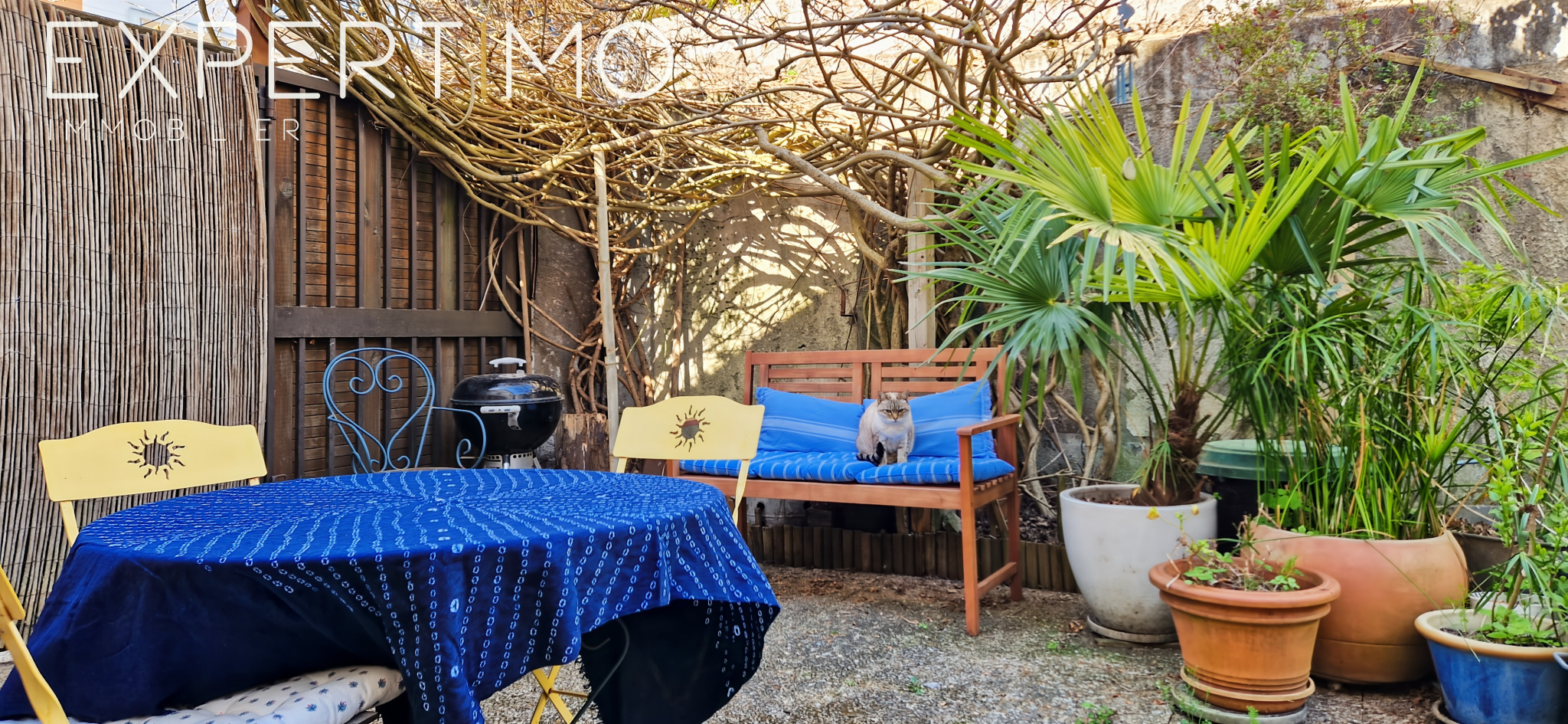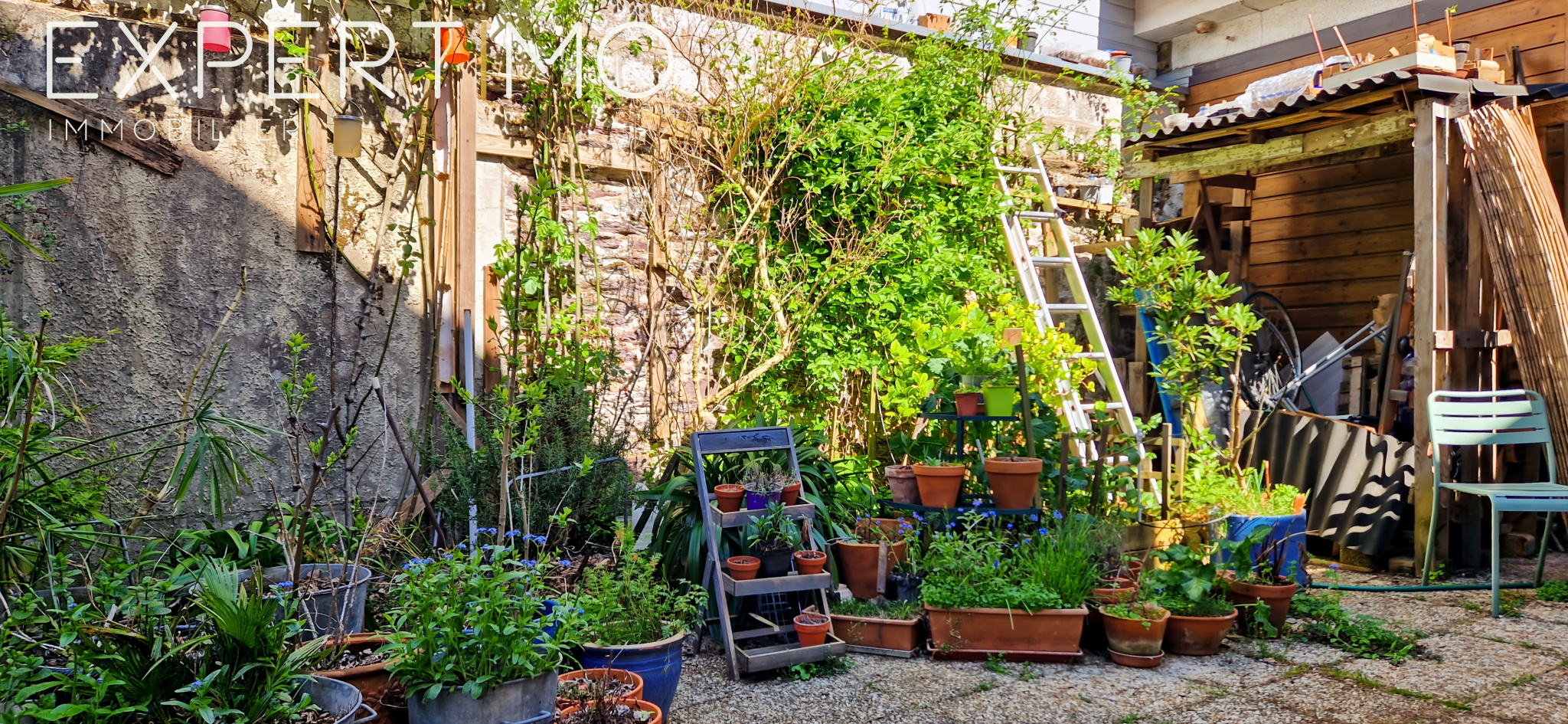 Une grande cour d'environ 60m², exposée Ouest, permet de profiter d'un extérieur sans les contraintes de l'entretien d'un jardin.
