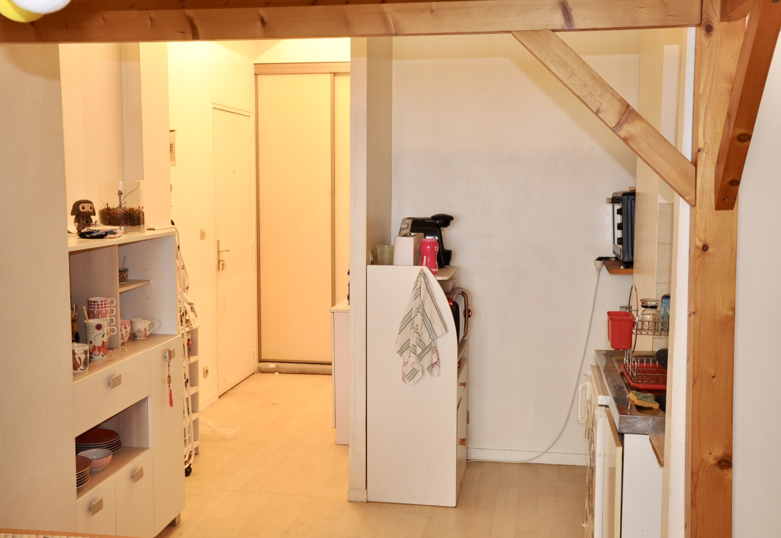 Il se compose de la façon suivante : une entrée avec placard, une pièce de vie avec kitchenette et une chambre en mezzanine, une salle de bains indépendante avec toilettes.
