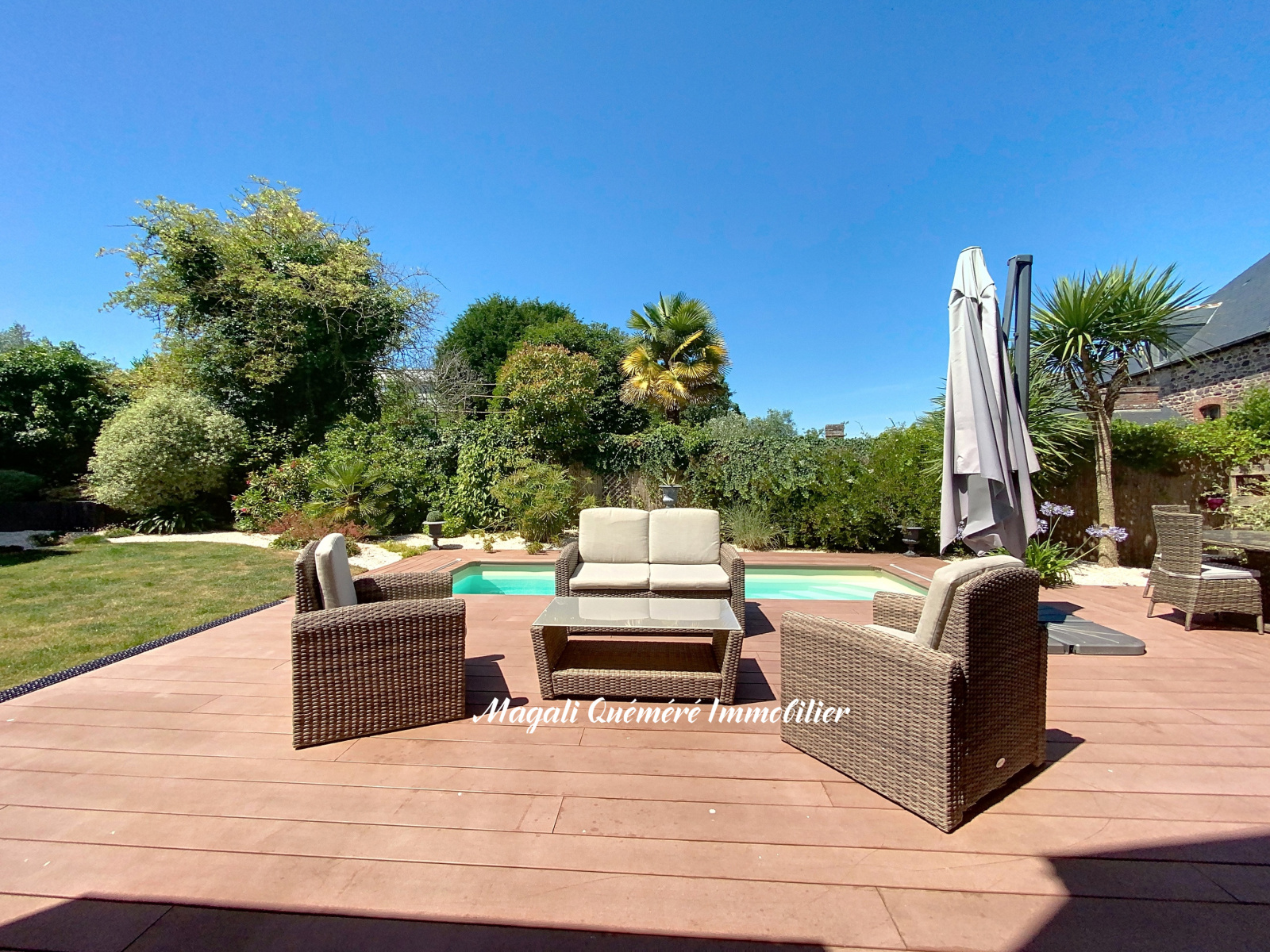 A l'extérieur, vous profiterez sur une parcelle de 489 m² d'un jardin clos et paysager , sans vis à vis, idéalement exposé Sud-Ouest, avec piscine chauffée (6 m x 3m) , couverte par une terrasse coulissante. Espace dédié pour plancha / barbecue.