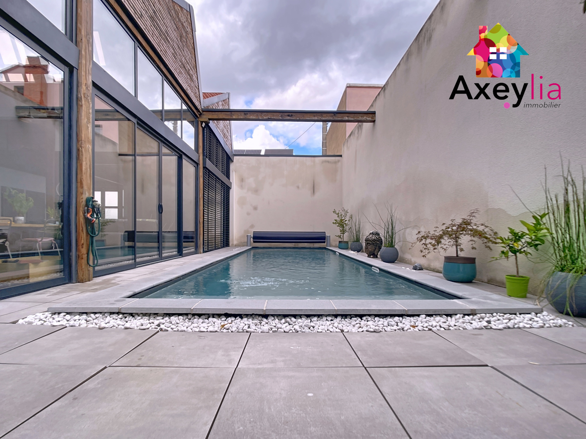 Le tout sur 416m2 de parcelle close avec cour pour du stationnement privatif, terrasse avec piscine chauffée.