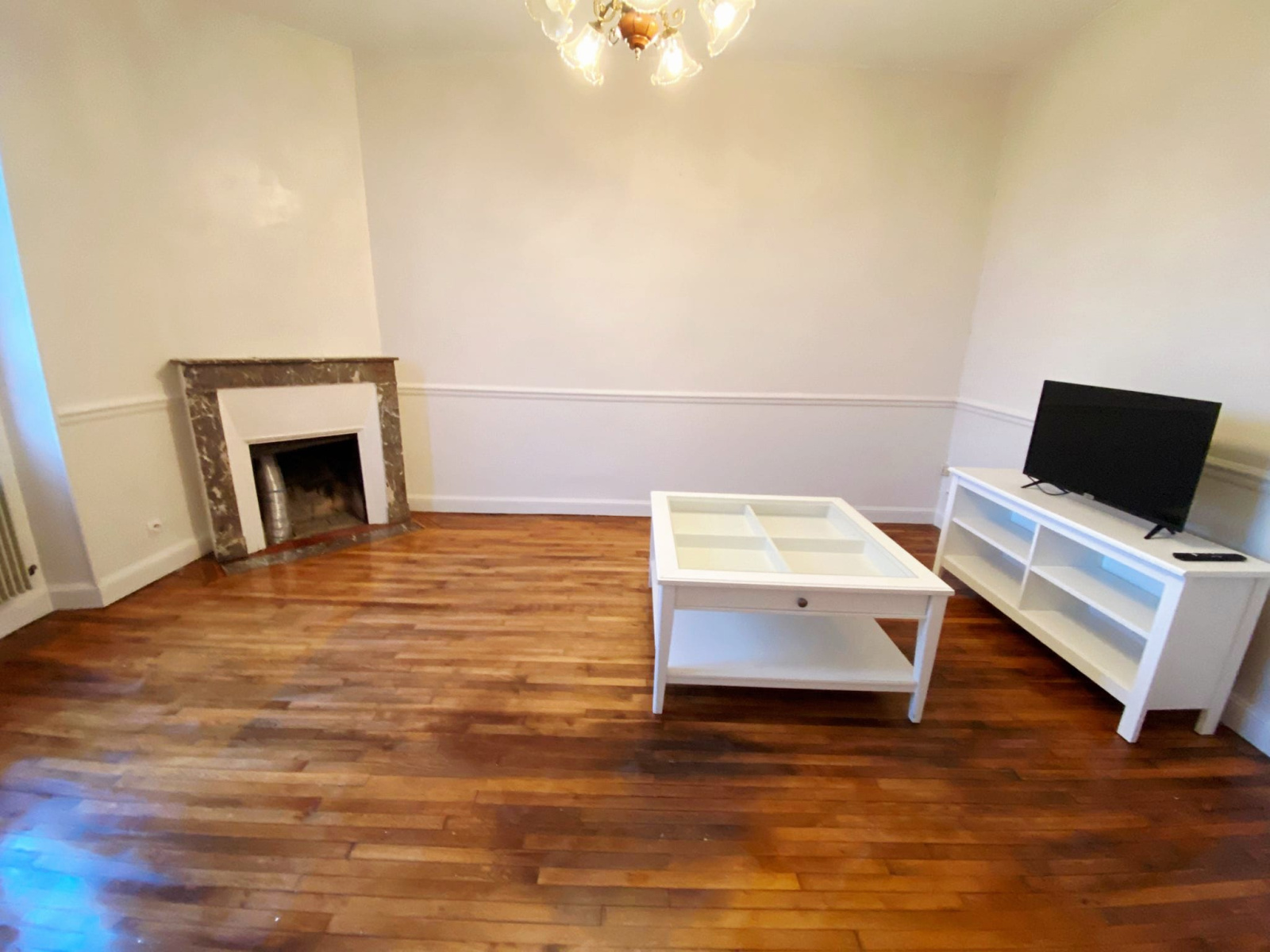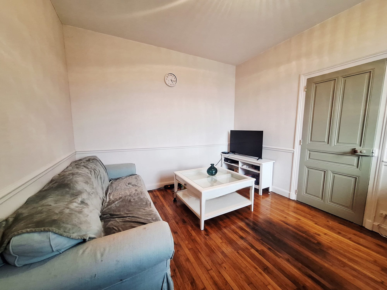 Agréable pièce de vie lumineuse avec parquet, cuisine indépendante, WC séparé.