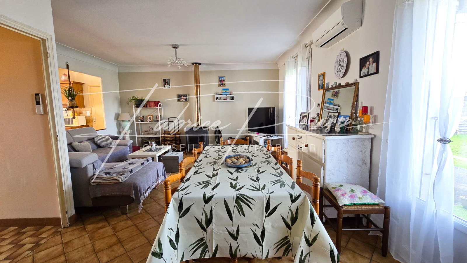 Cette maison de plain-pied d’environ 100 m², bien entretenue, se compose de :