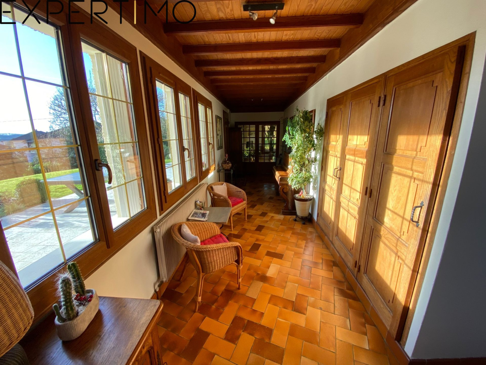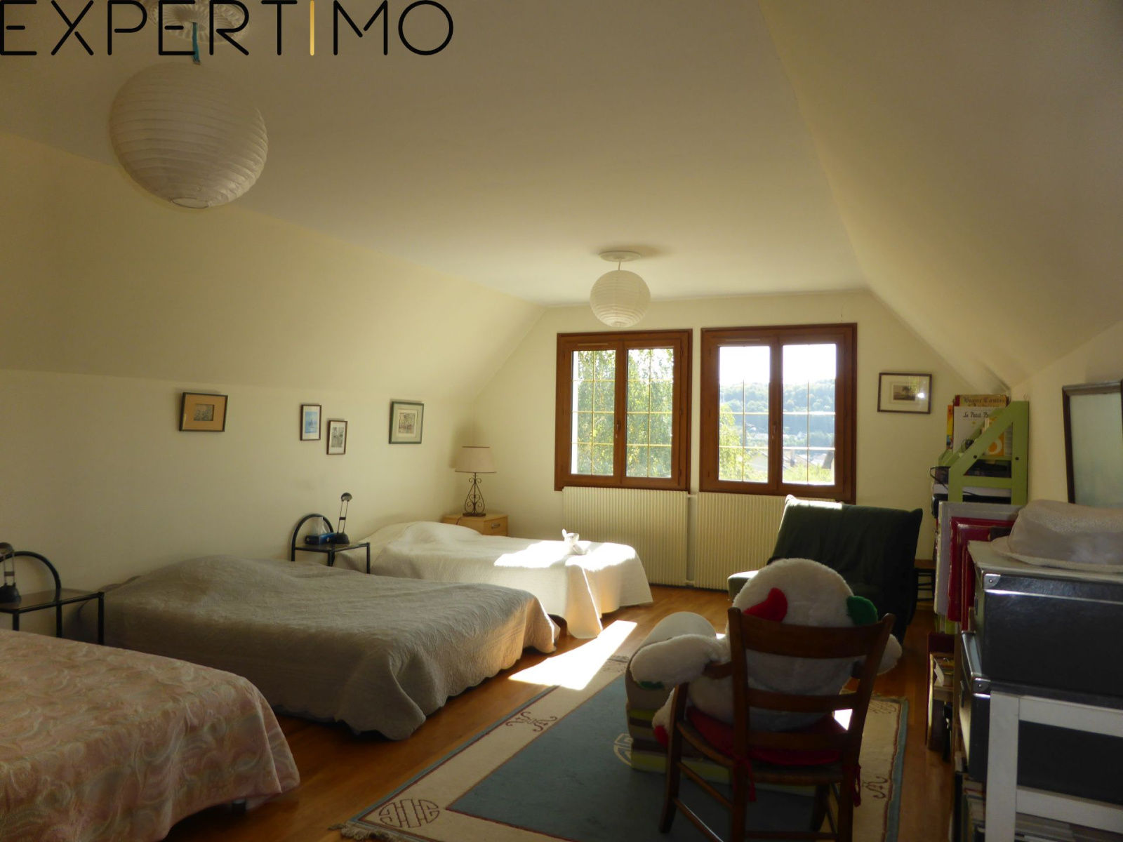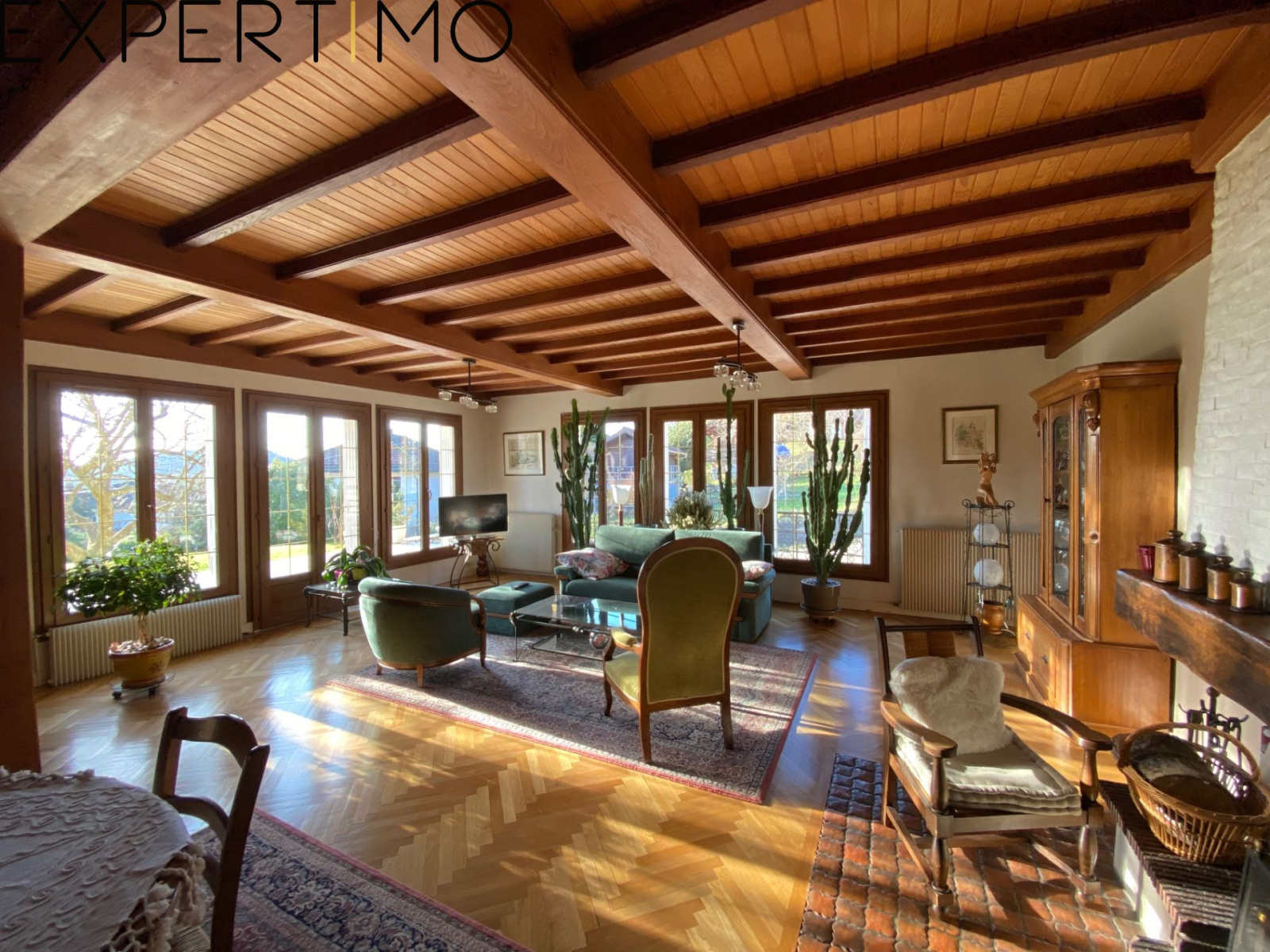 Sur les hauteurs de Montmorot, nous vous proposons une villa de 300 m2, avec sous-sol de 150 m2, soit un volume de 450 m2 au total. Elle est composée d'un double séjour avec cheminée orienté sud ouest, avec accès à 2 terrasses(sud et nord), d'une cuisine indépendante, d'un salon secondaire, de 6 chambres, 2 wc, sdb. Au 1er étage, vous trouverez un appartement type 3. Le sous sol est composé d'un grand garage, d'un cellier, d'une buanderie, de 2 caves, et d'un atelier. Le terrain est piscinable.Â