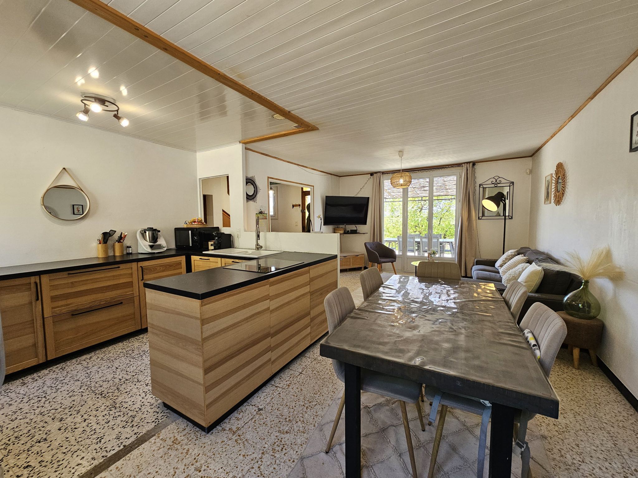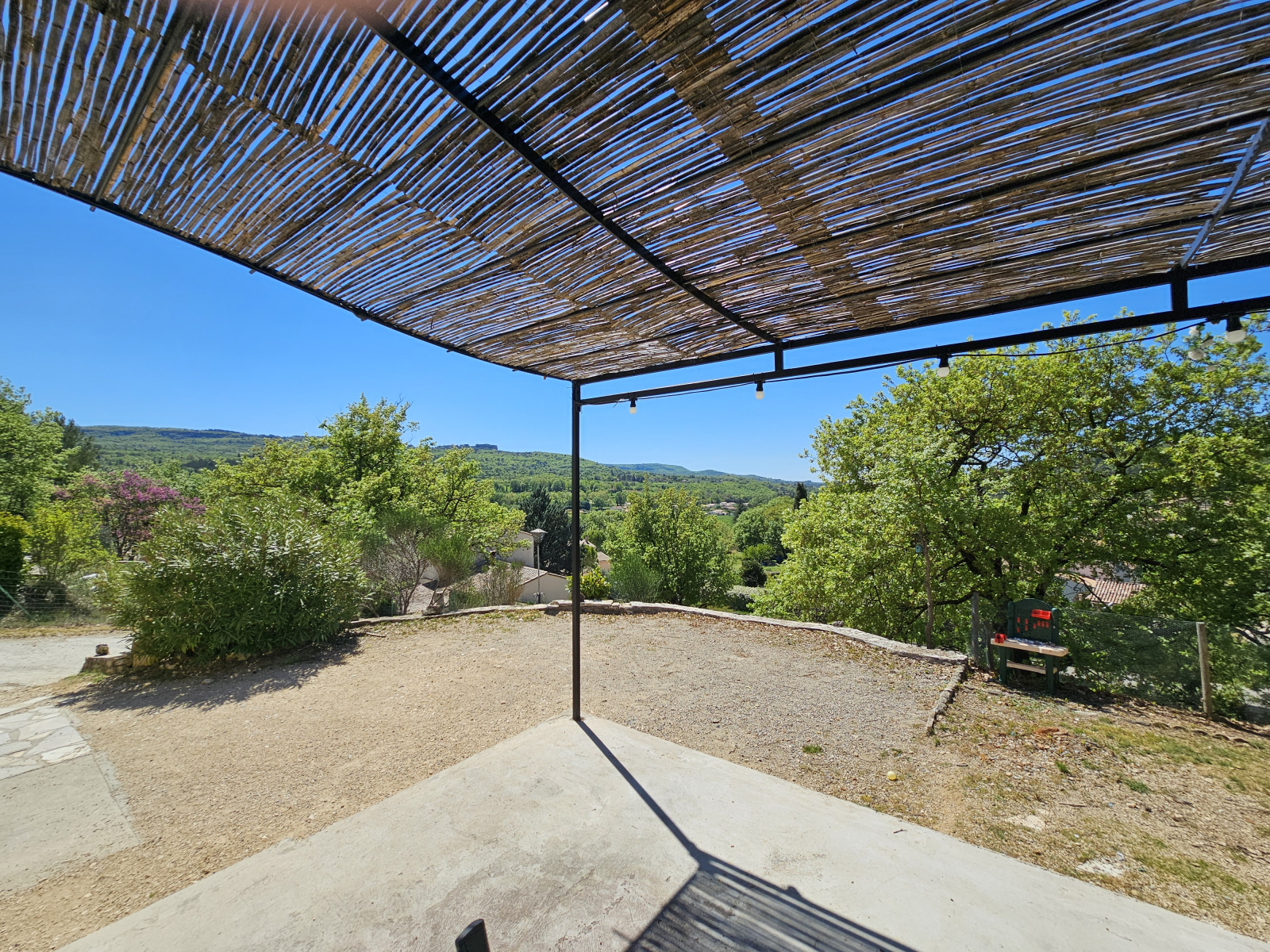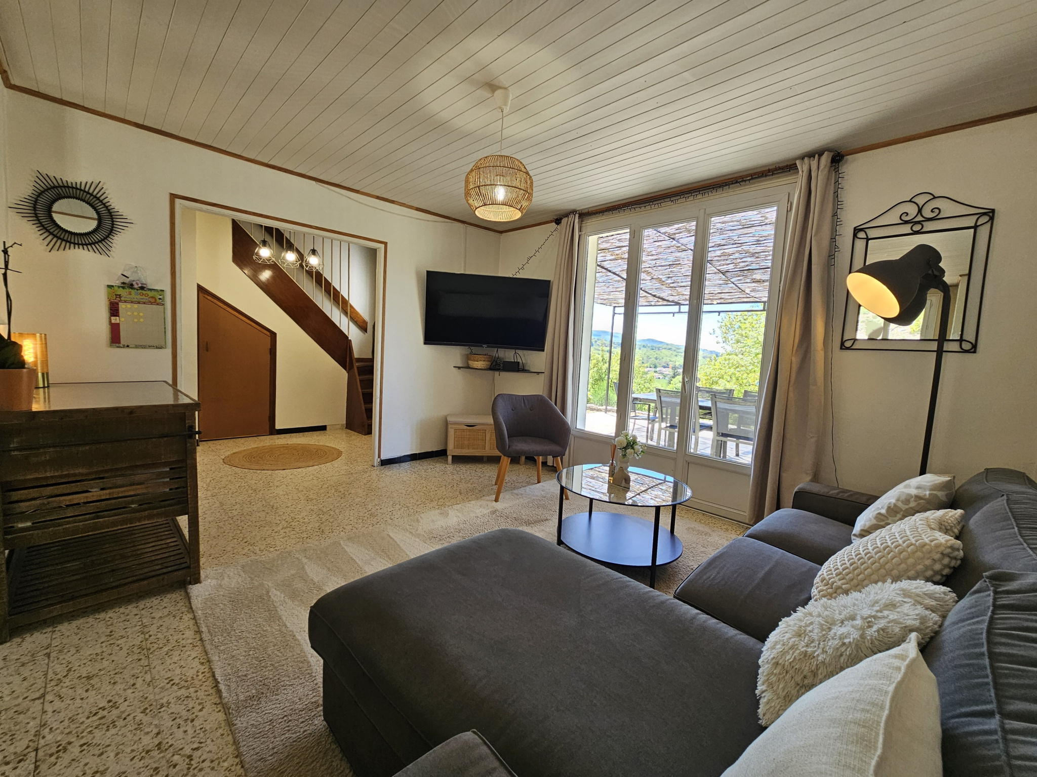 À l’extérieur, depuis la grande terrasse de 25 m², on profite d’une magnifique vue sur le Luberon et la nature environnante.