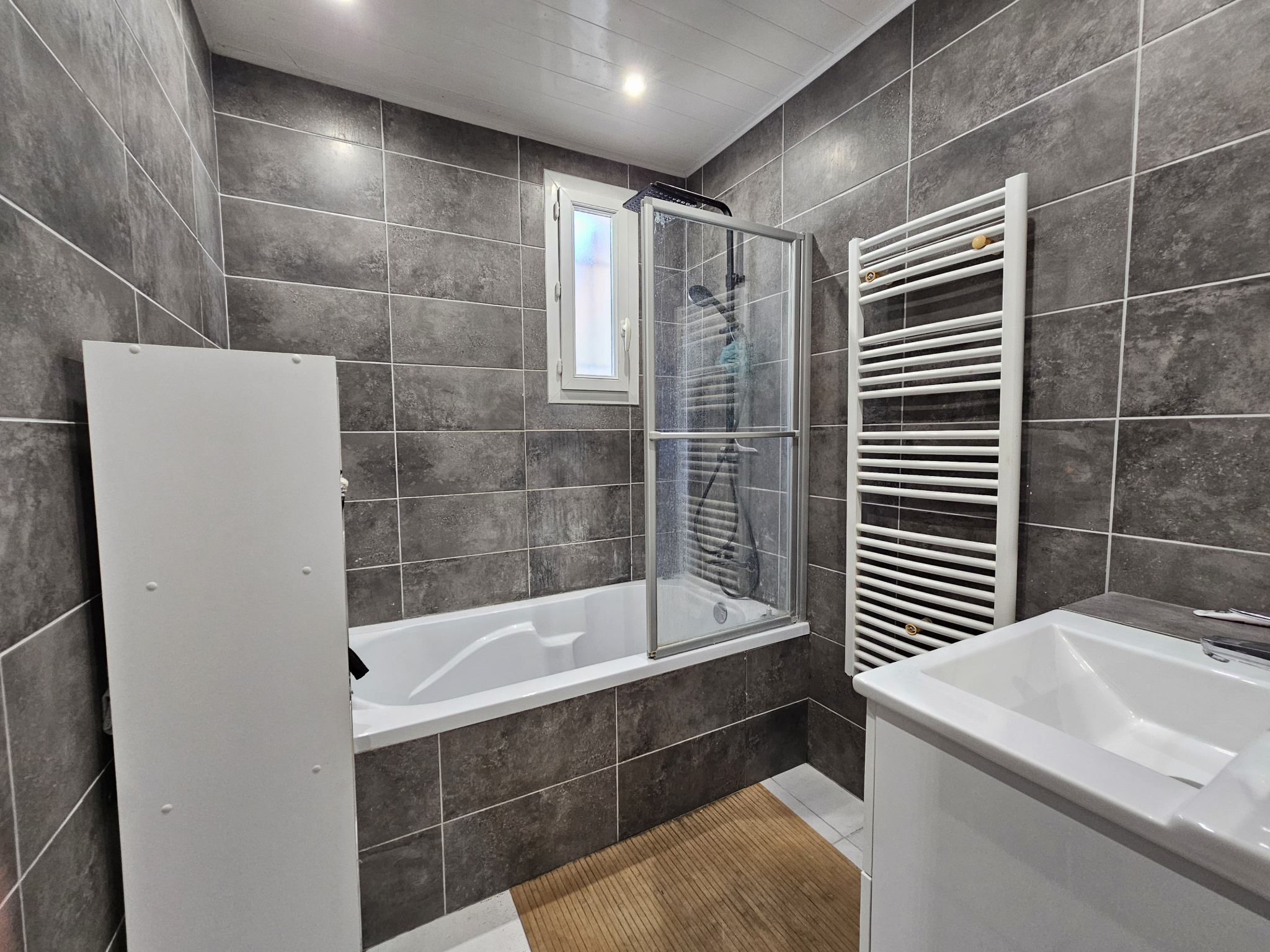 Elle se compose, en rez-de-jardin, d’une jolie pièce de vie lumineuse avec cuisine ouverte, d’une chambre parentale de 13 m², d’une salle d’eau et d’une buanderie. À l’étage, deux grandes chambres de 12 m² et 9,50 m² complètent l’habitation.