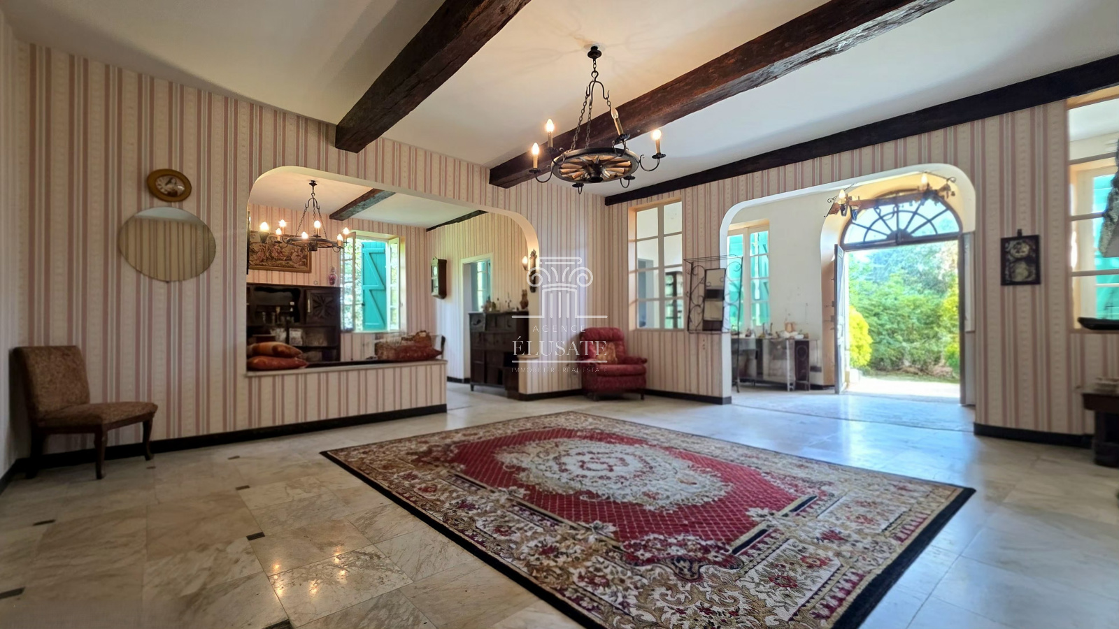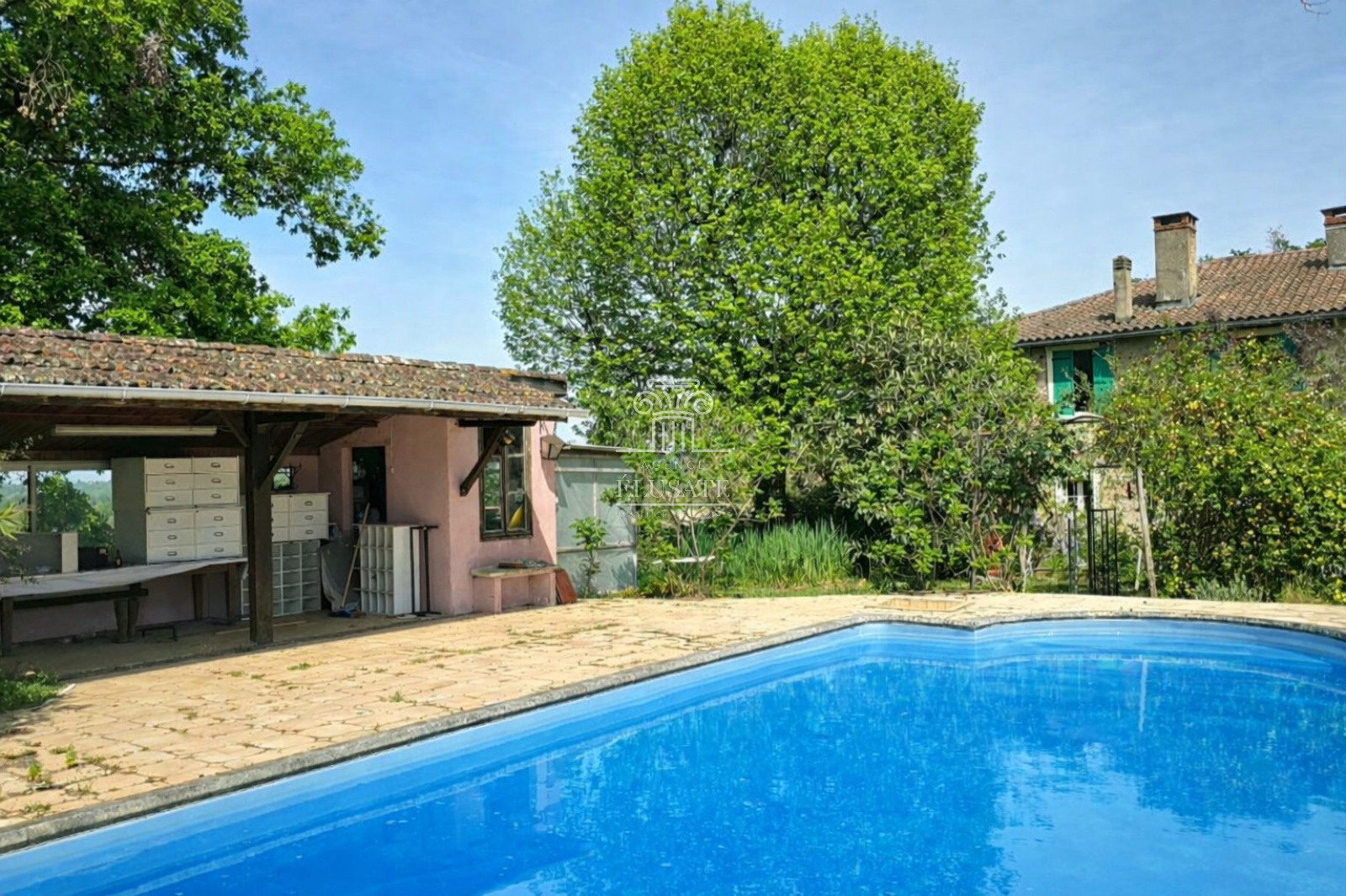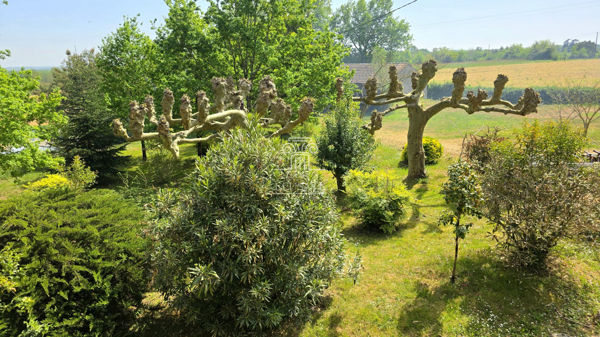 À l’extérieur, le parc paysager, véritable écrin de verdure, invite à la détente et à la sérénité. La dépendance de 160m² ouvre la voie à de multiples projets : maison d’amis, atelier ou espace de réception ou tout simplement des garages.