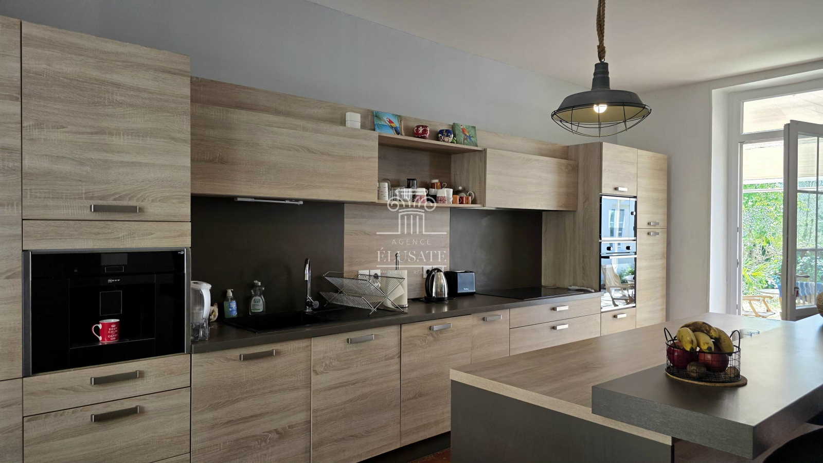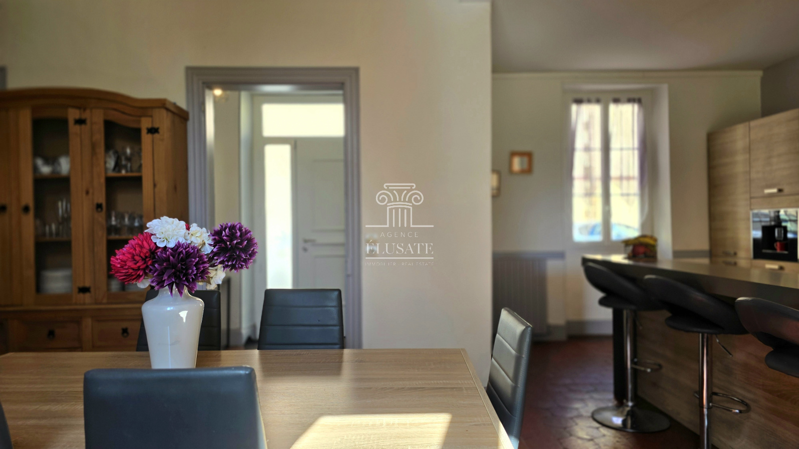 Cette maison de caractère s’organise autour d’une belle pièce de vie baignée de lumière, avec cuisine ouverte, prolongée naturellement vers une terrasse accueillante, idéale pour profiter des beaux jours. Un salon apporte un espace plus intime, tandis qu’un bureau permet de concilier vie professionnelle et personnelle en toute sérénité.