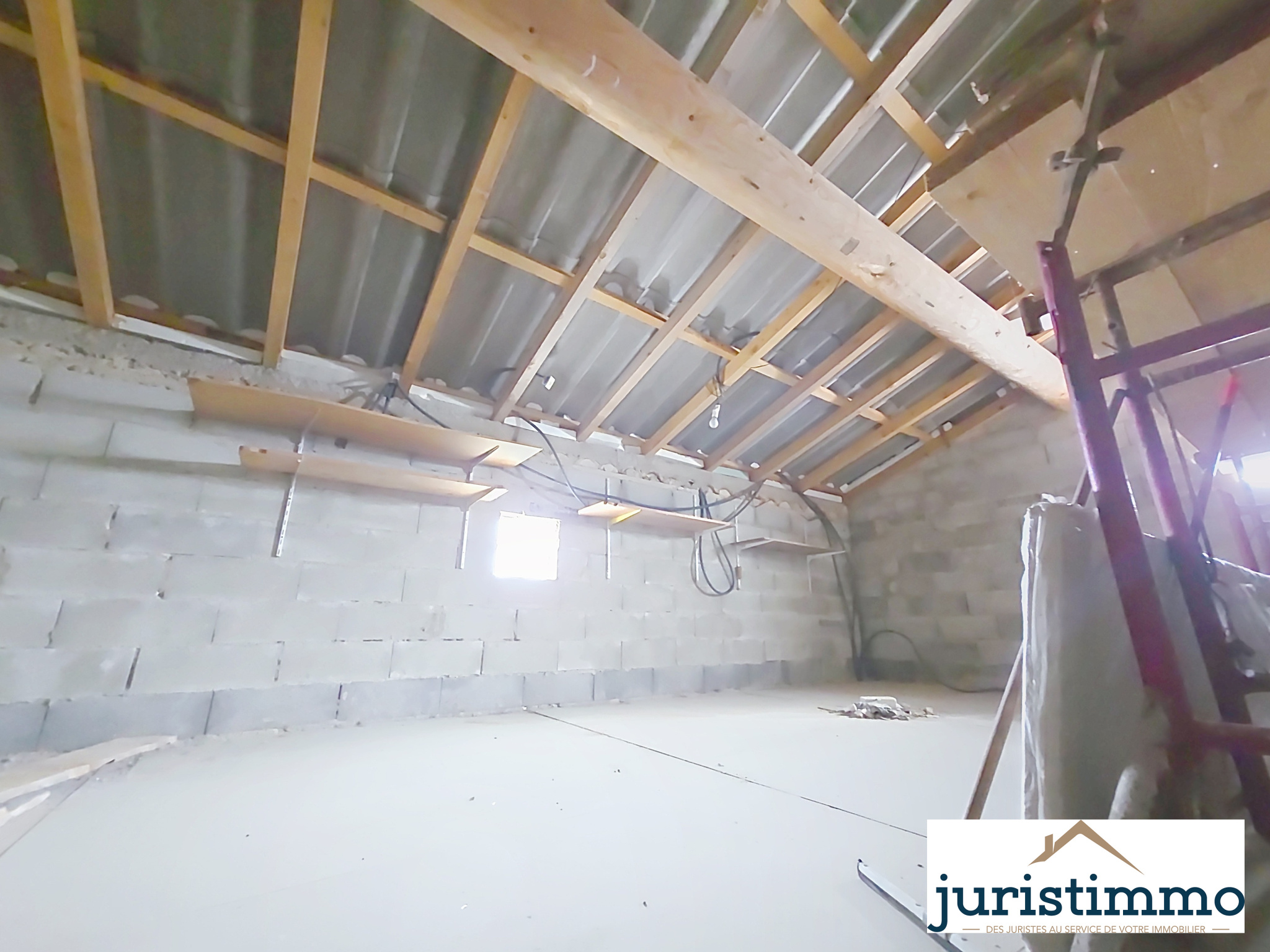 côté technique: plafond avec poutres apparentes soutenant un plancher porteur pour extension éventuelle avec un réhaussement de la toiture