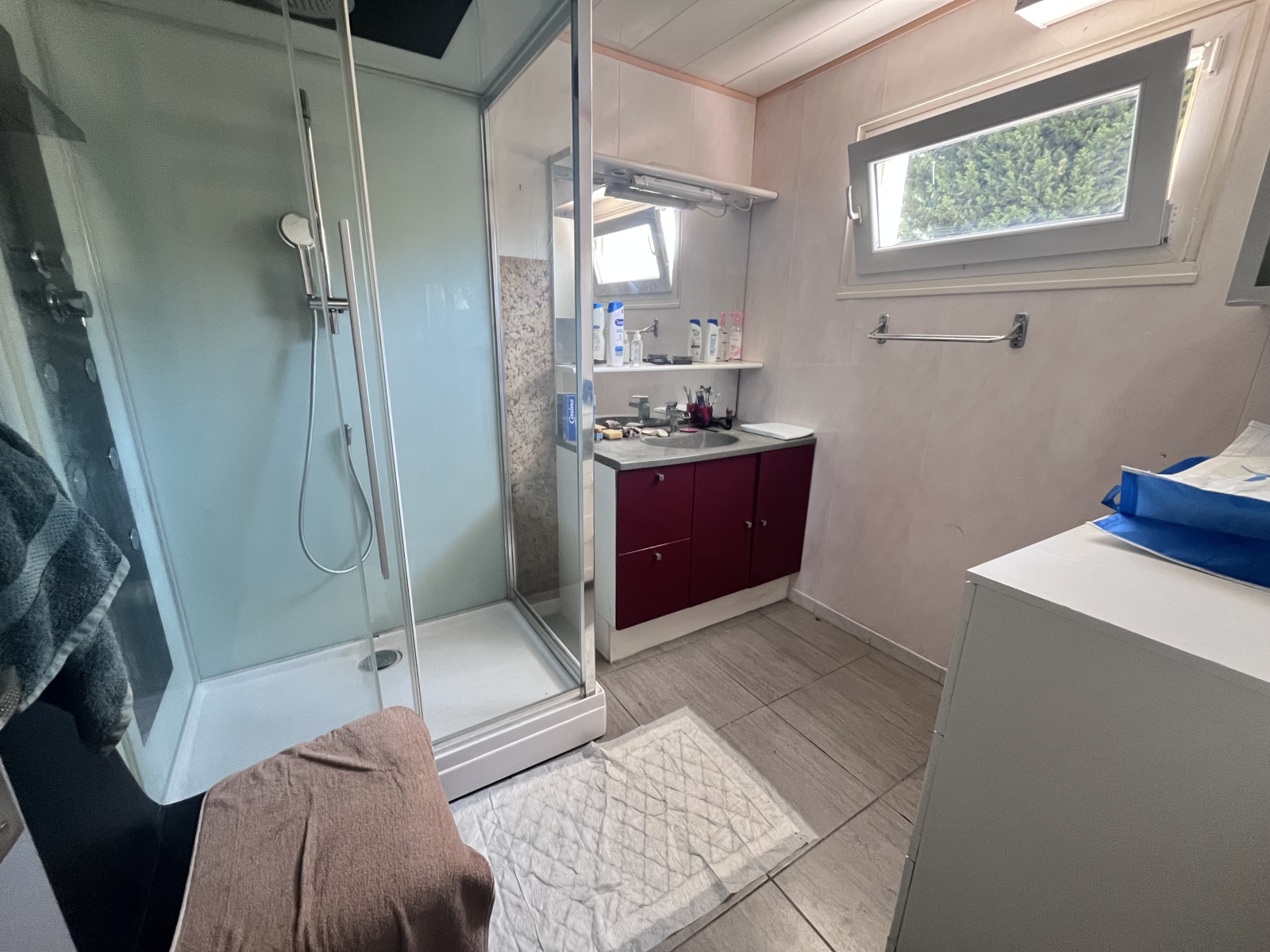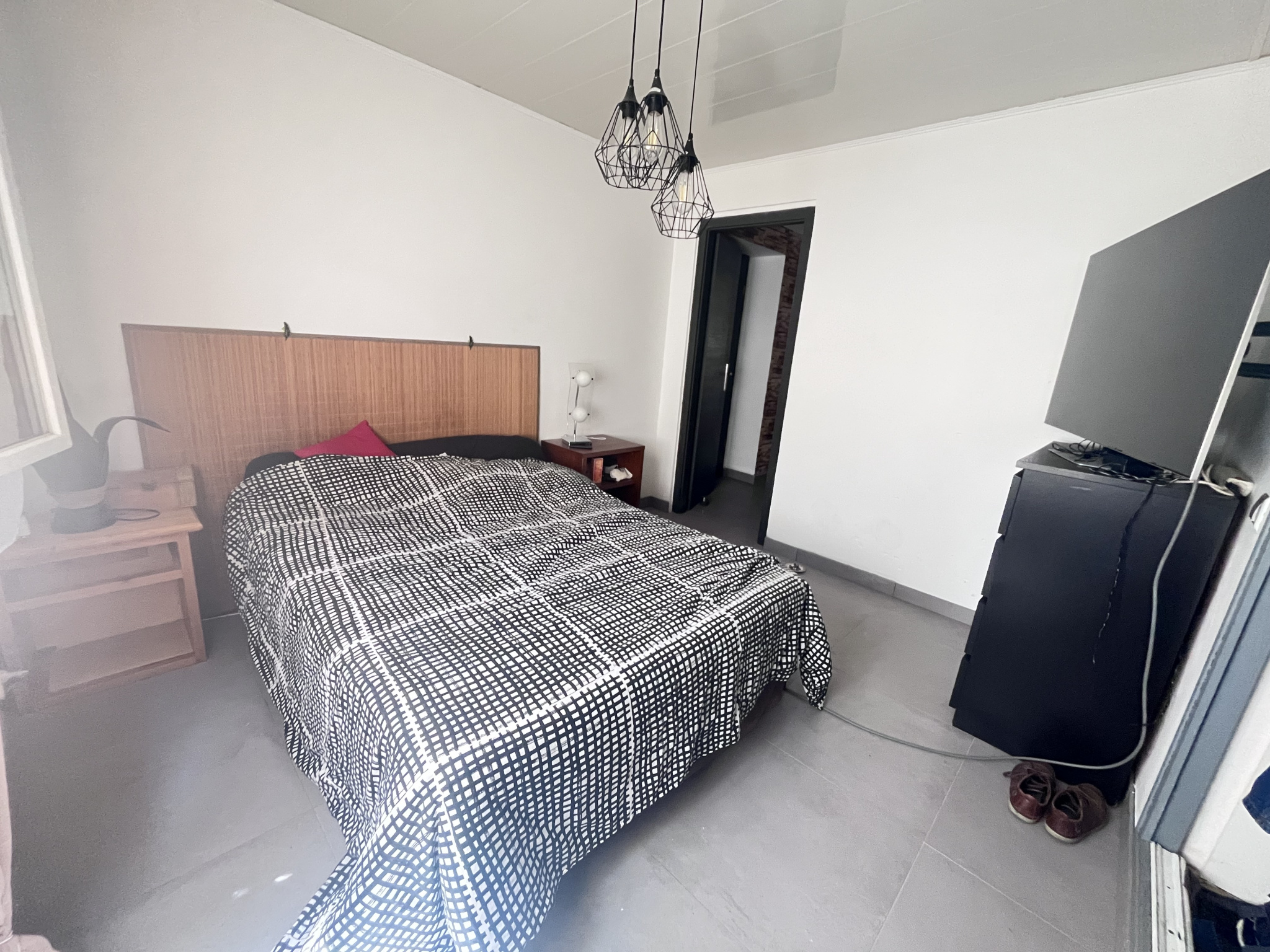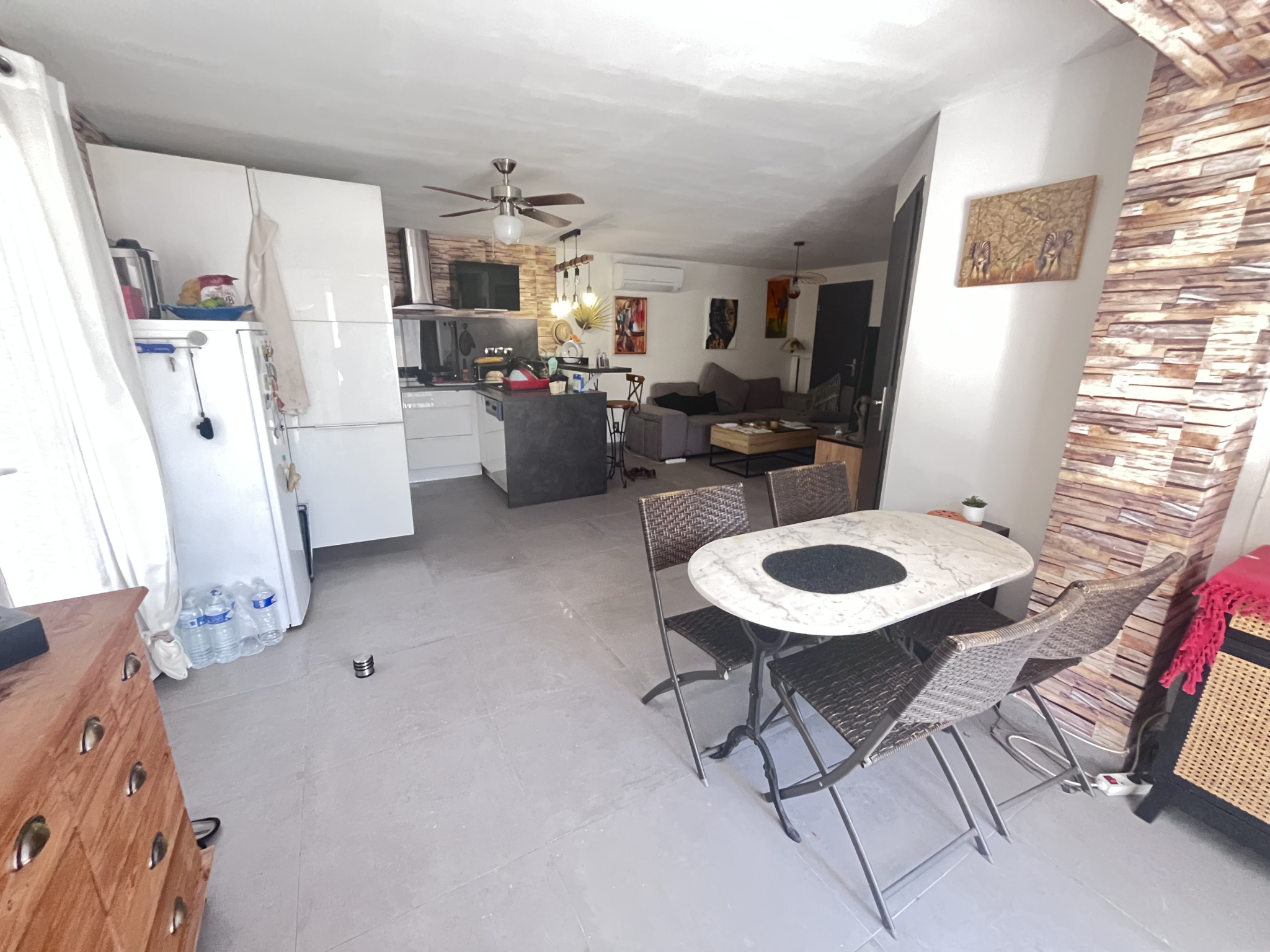La deuxième habitation, d'une superficie de 74 m², comprend deux chambres, une salle d'eau avec une douche à l'italienne et sèche serviette, ainsi qu'un espace de vie agréable avec une cuisine ouverte et équipée donnant sur le séjour.