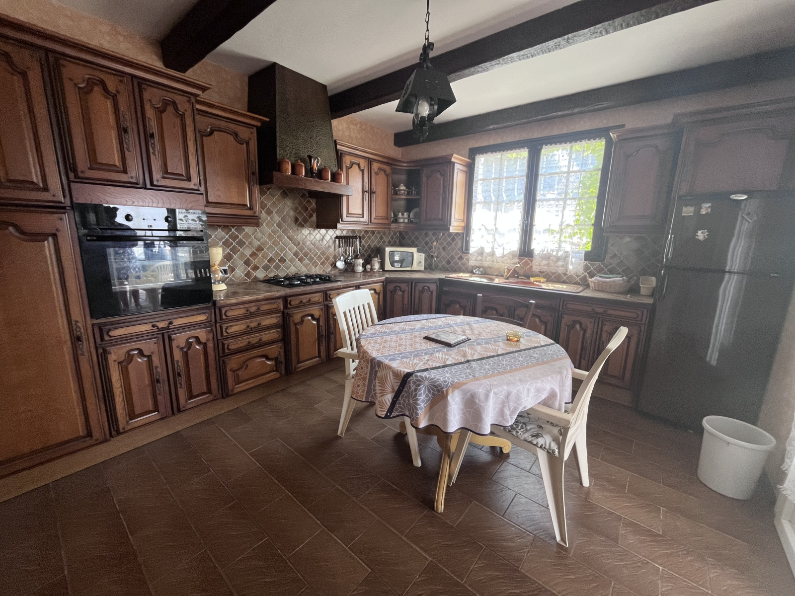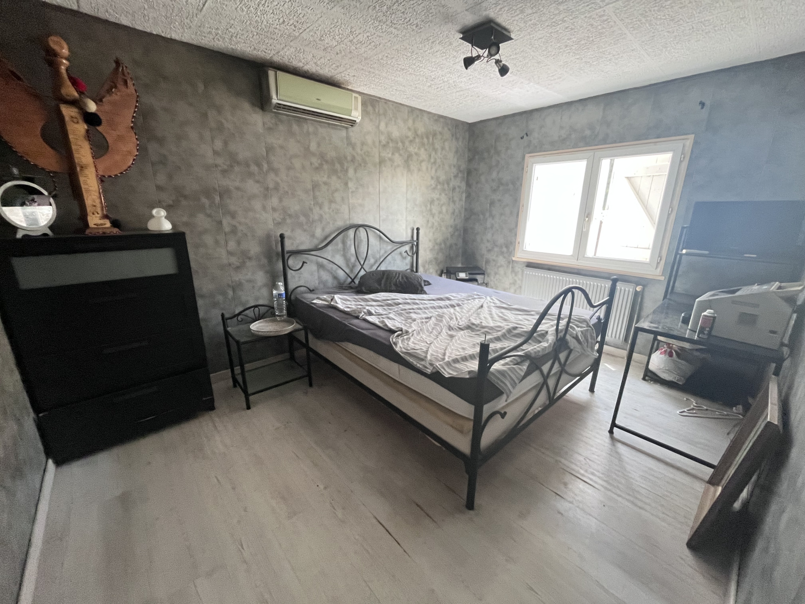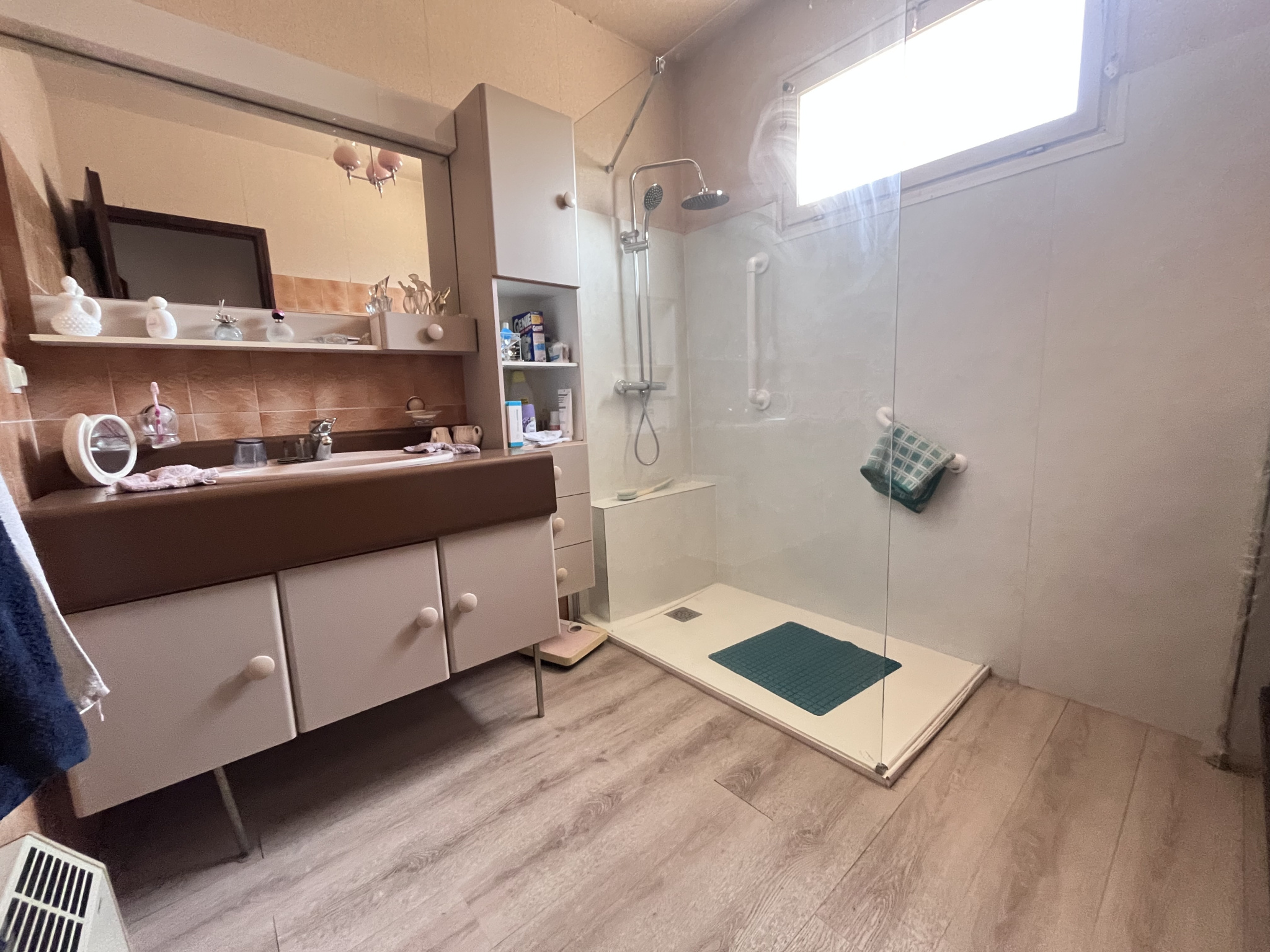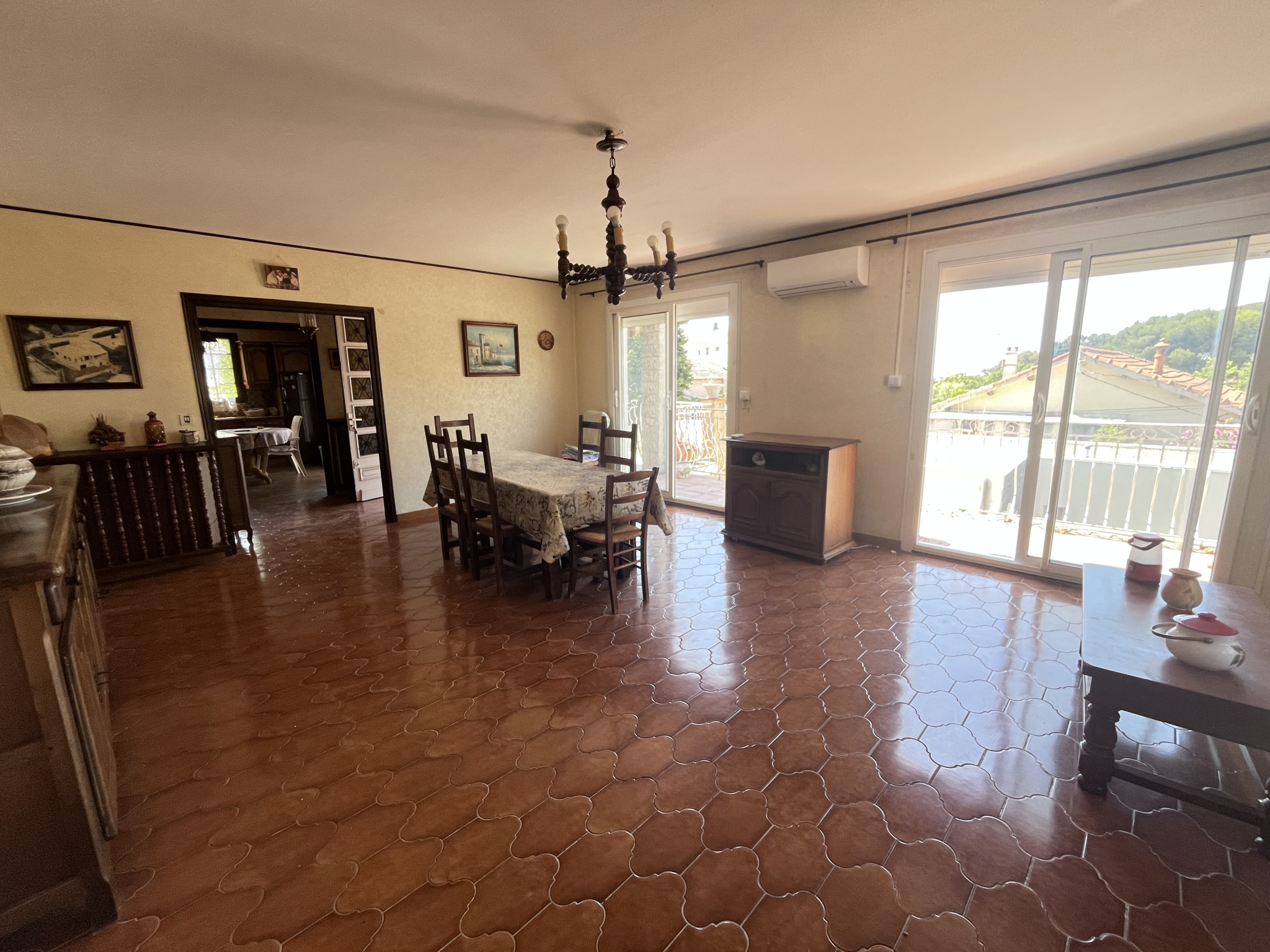 La première habitation dispose de trois chambres, d'un séjour lumineux grâce à ses deux baies vitrées, et complété par une cheminée, d'une cuisine indépendante, ainsi qu'une salle d'eau équipée d'une douche avec bac plat. Elle bénéficie également de volets roulants électriques et d'une climatisation réversible, apportant confort été comme hiver.