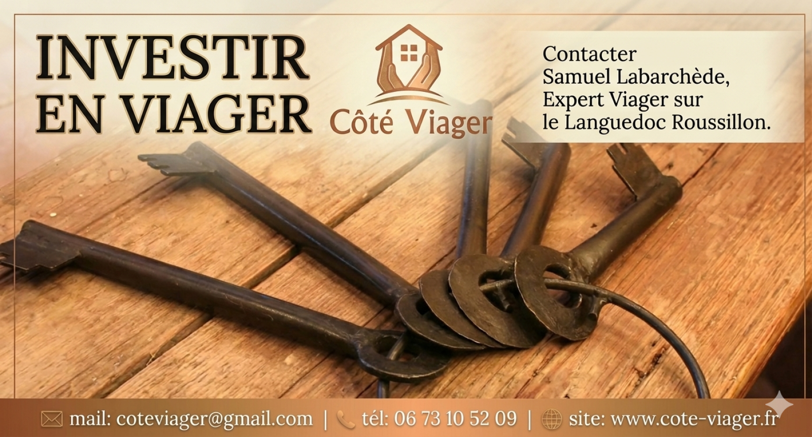 Contactez Samuel Labarchede réseau Expertimo / Cabinet Côté Viager SARLU au capital de 1000 € dont le siège social est situé au 7 rue de la source 34410 Sauvian N° 804 437 424 R.C.S Code NAF 6831 Z - carte professionnelle délivrée par le CCI de Montpellier N°CPI : 34012018000028680 ( transaction sur immeuble et fonds de commerce) . Caisse de garantie Galian rue de la boétie 75008 Paris pour un montant de 120000 euros-